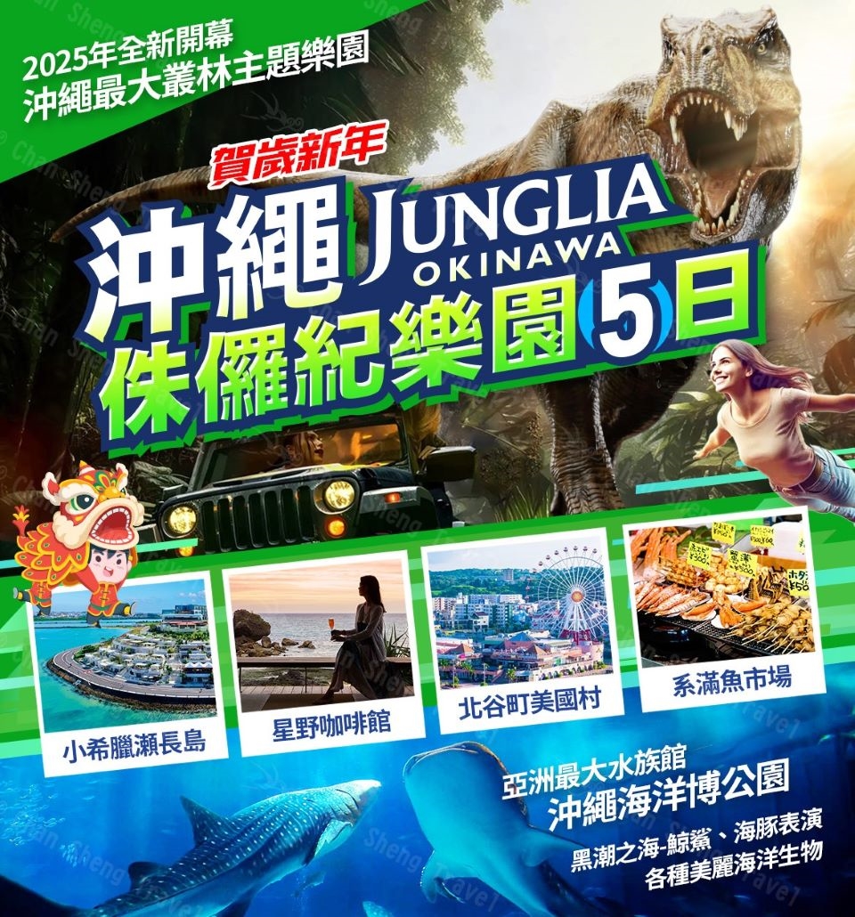 【沖繩JUNGLIA叢林侏儸紀樂園】2025年,一座佔地60公頃的全新主題樂園即將在沖繩北部驚艷登場!JUNGLIA叢林樂園不只是一般的遊樂園,更是將沖繩珍貴的自然生態與現代娛樂完美結合的度假勝地。 在沖繩北部這片被稱為「山原」的淨土上,JUNGLIA叢林樂園佔地相當於13座東京巨蛋的規模,前身是一座高爾夫球場。選址於名護市與今歸仁村交界處,緊鄰著美麗的古宇利島,這裡不只擁有得天獨厚的自然環境,更被列入世界自然遺產的範疇。園區以「叢林與恐龍」為主題,完美融合了沖繩特有的亞熱帶風情與新穎的娛樂設施。不同於一般的主題樂園,JUNGLIA更注重與自然共生的理念,讓遊客在遊玩的同時,也能感受到沖繩原始自然的魅力。 JUNGLIA叢林樂園的誕生,不僅為沖繩北部觀光注入新活力,更開創了一個全新的旅遊型態。結合自然生態與現代娛樂的概念,讓遊客在享受刺激設施的同時,也能親近大自然、感受沖繩的在地魅力。 早餐:飯店內享用 午餐:方便逛街,敬請自理 晚餐:方便逛街,敬請自理 |
