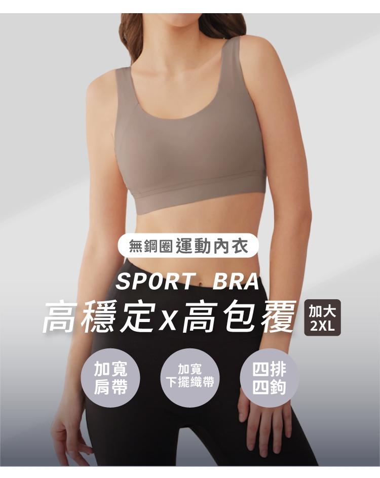 【伊柔 EVEROY】顯瘦無痕高包覆無鋼圈運動內衣 L-2XL 內衣 W035 膚色/可可/黑色