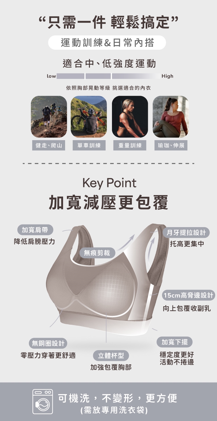 四排四鉤+美背設計|服貼不捲邊,活動自在零束縛