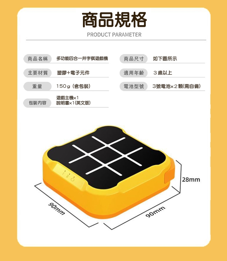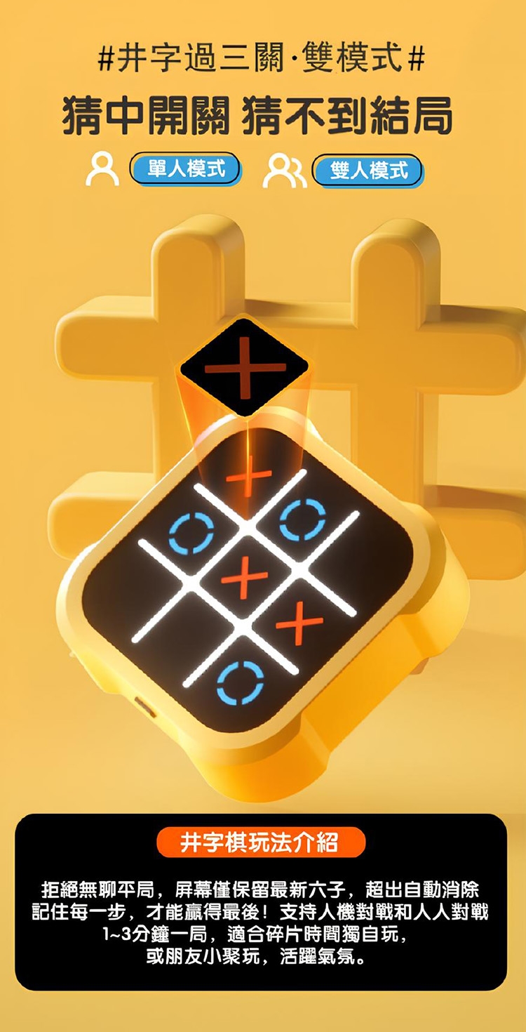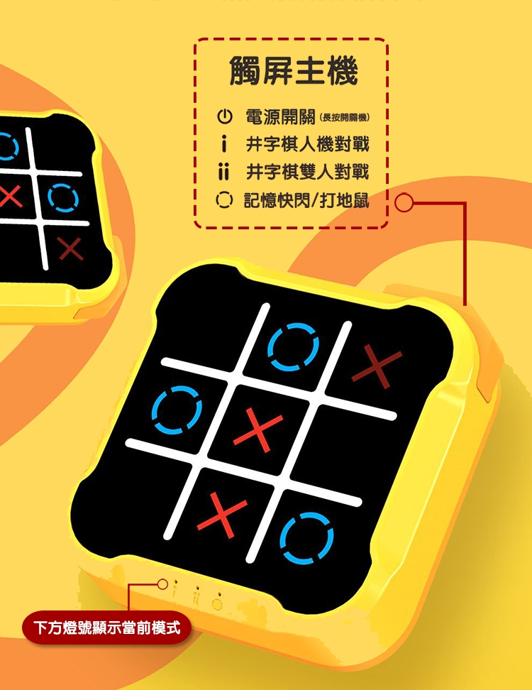 品名:四合一井字棋遊戲機/益智XO棋/打地鼠/記憶力大考驗(親子互動/派對露營/桌遊)