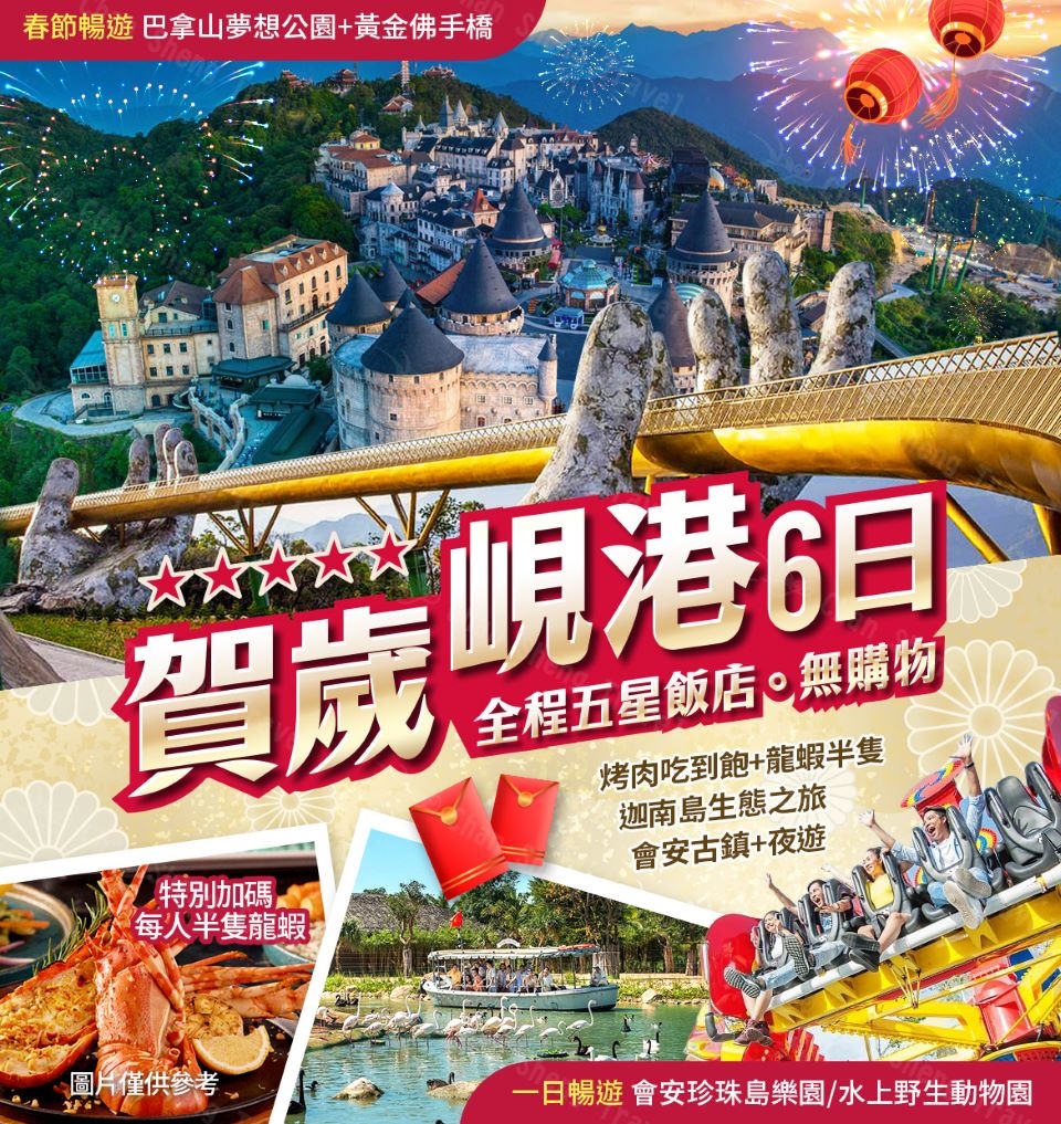 早餐:飯店享用午餐:巴拿山自助餐晚餐:峴港海鮮料理含酒水