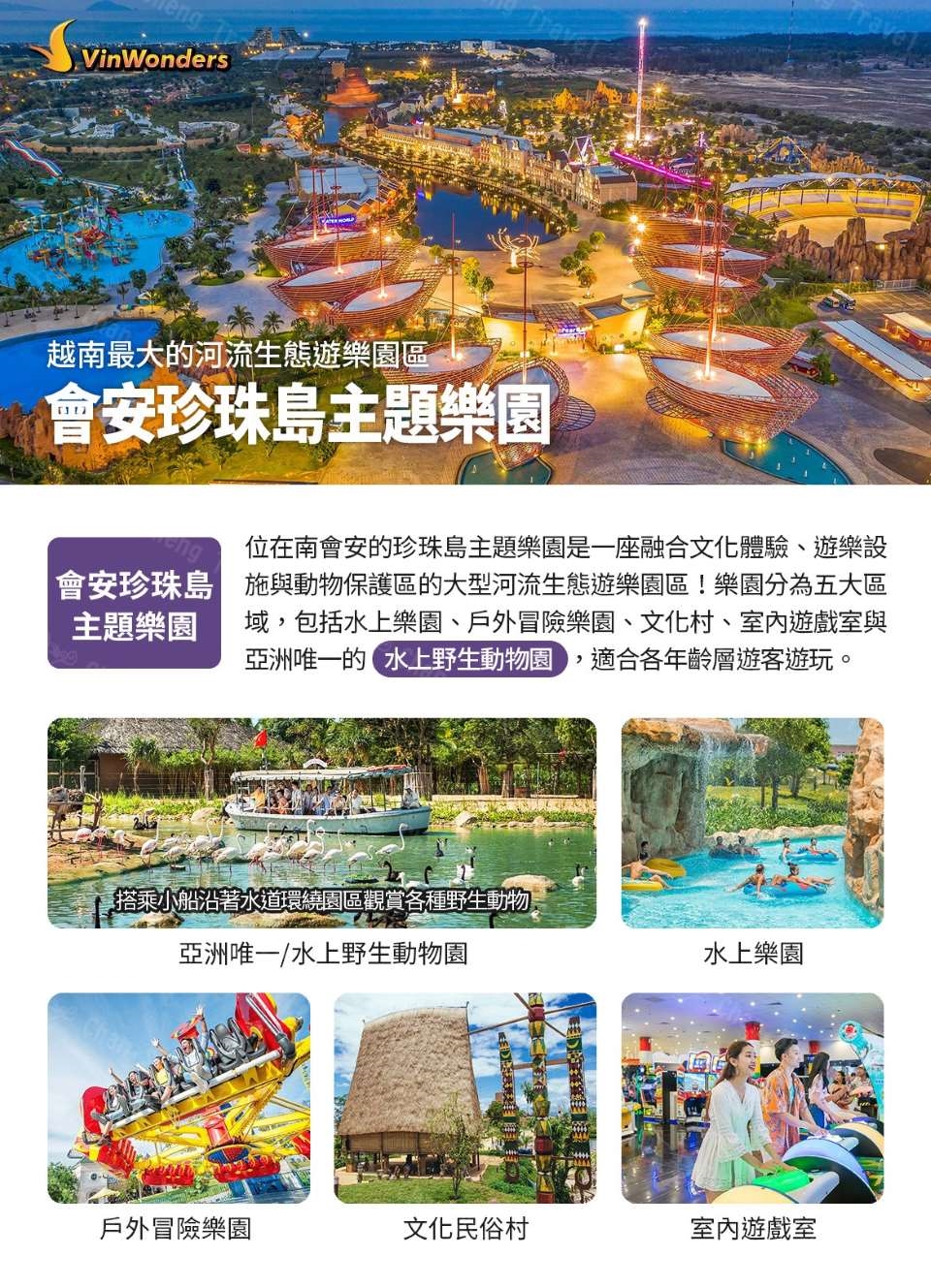 第 三 天 會安→珍珠樂園一日遊 亞洲唯一水上野生動物園、水上樂園、文化民俗村、戶外冒險樂園、室內遊戲室