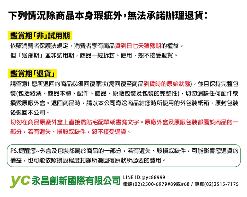 拆封使用後恕不接受退貨