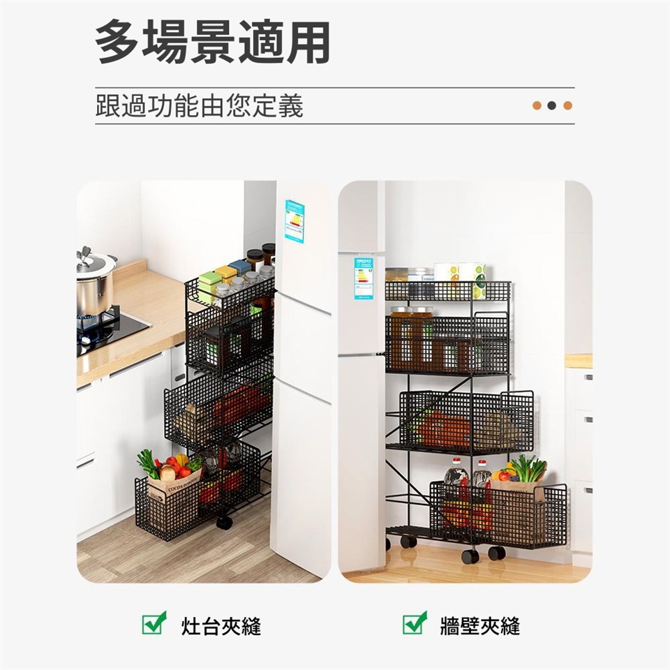 抽拉式夾縫架,分層收納,萬象滑輪,結實耐用