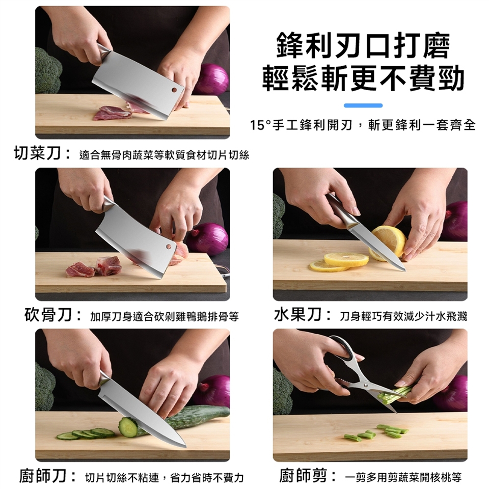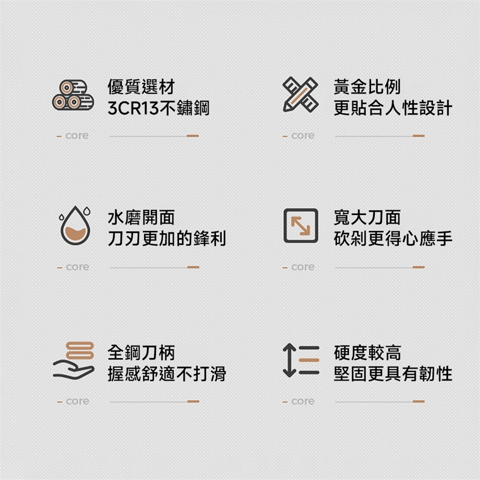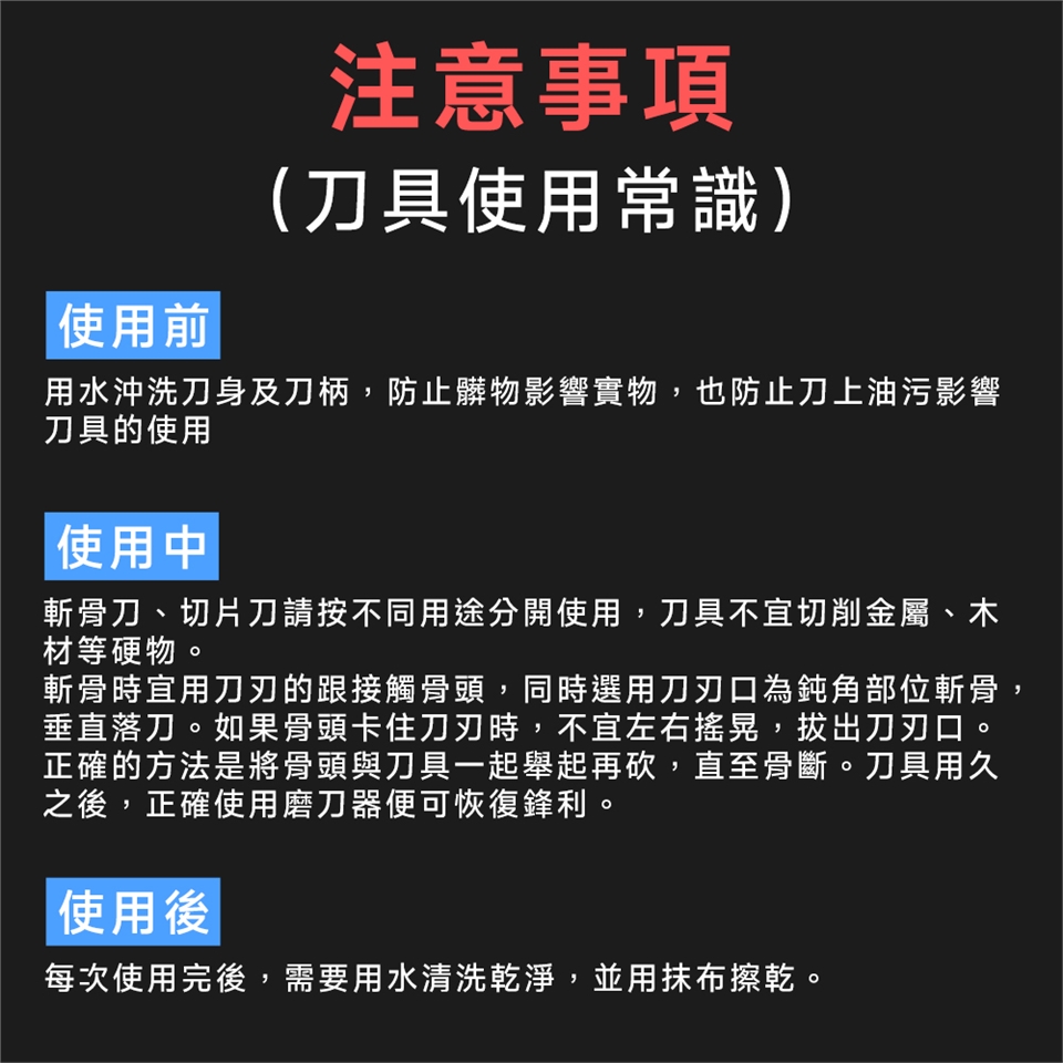 砍骨一刀兩斷:加厚刀身,砍劈產生類似與斧頭的效果適用於剁砍骨頭等堅硬食物