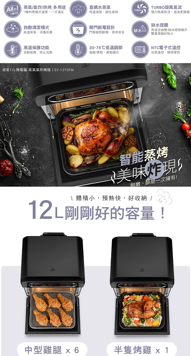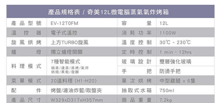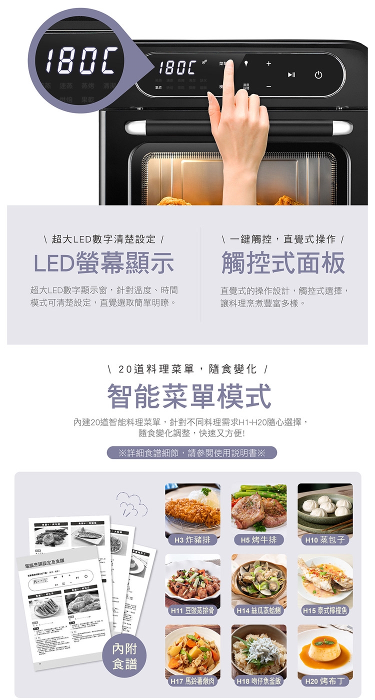料理模式:7種(純蒸/速蒸/蒸烤/氣炸/烘焙/果乾/發酵)