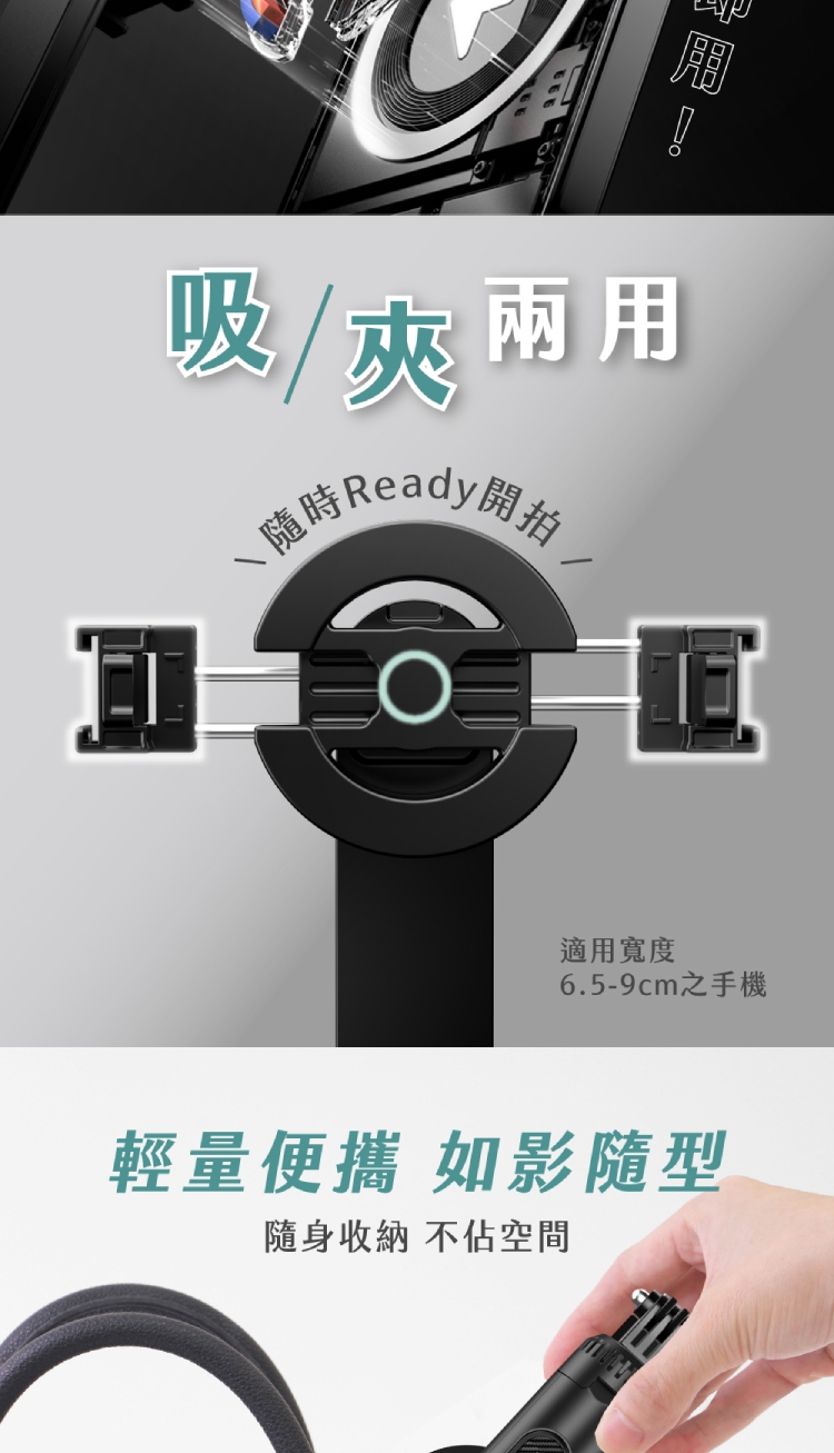◆ 手機夾模式-適用手機寬度6.5-9cm