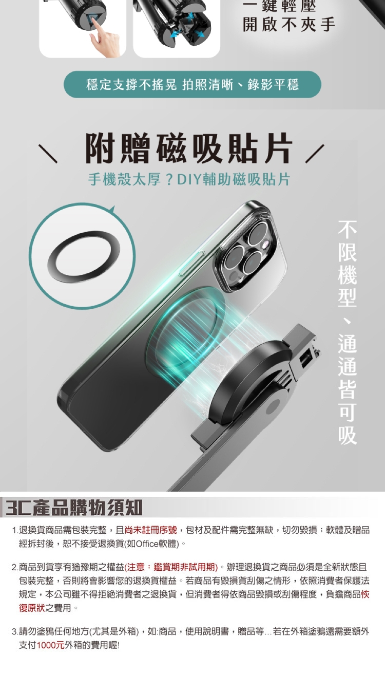 ◆ 附磁吸貼片,可搭配手機殼使用