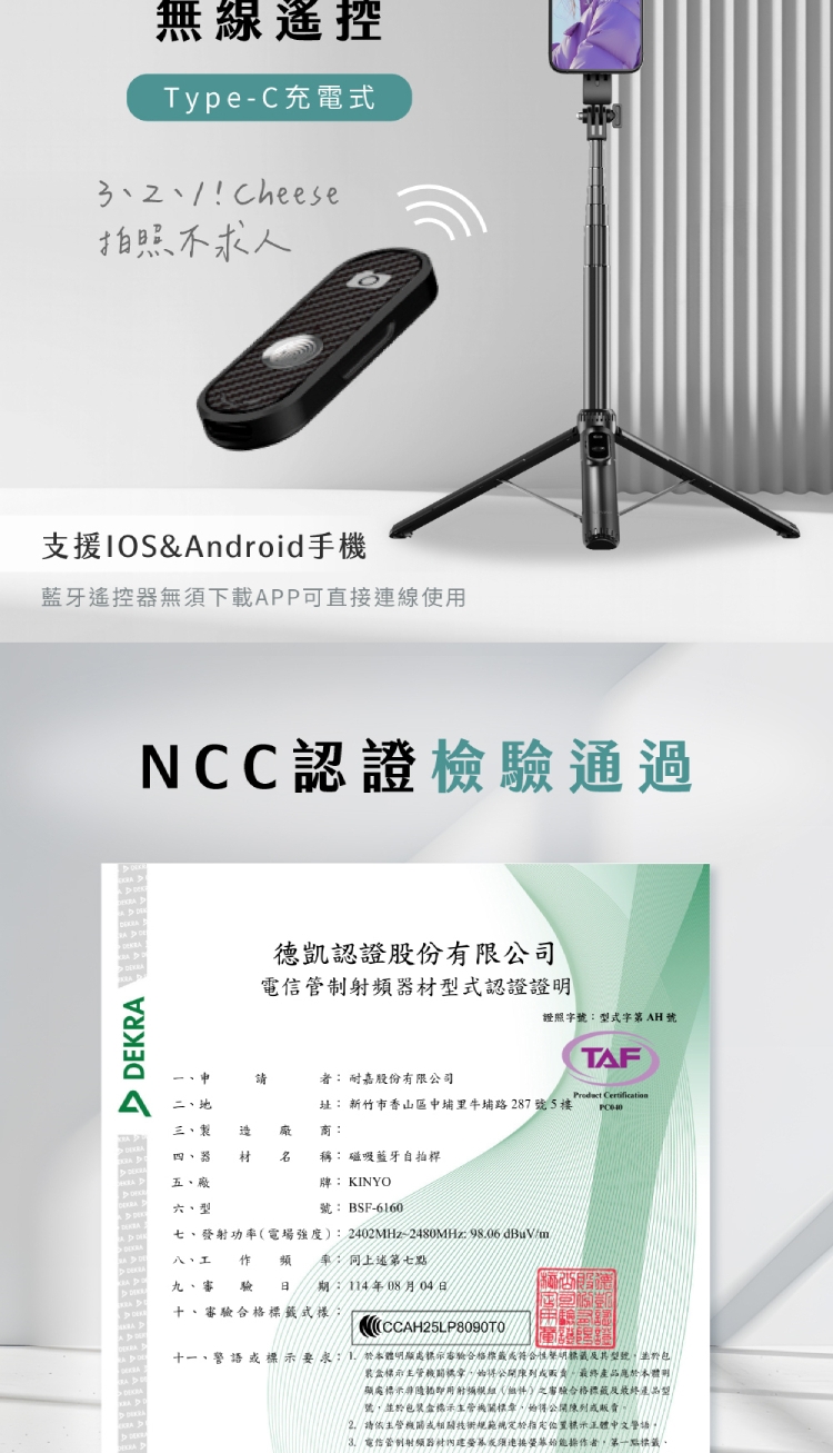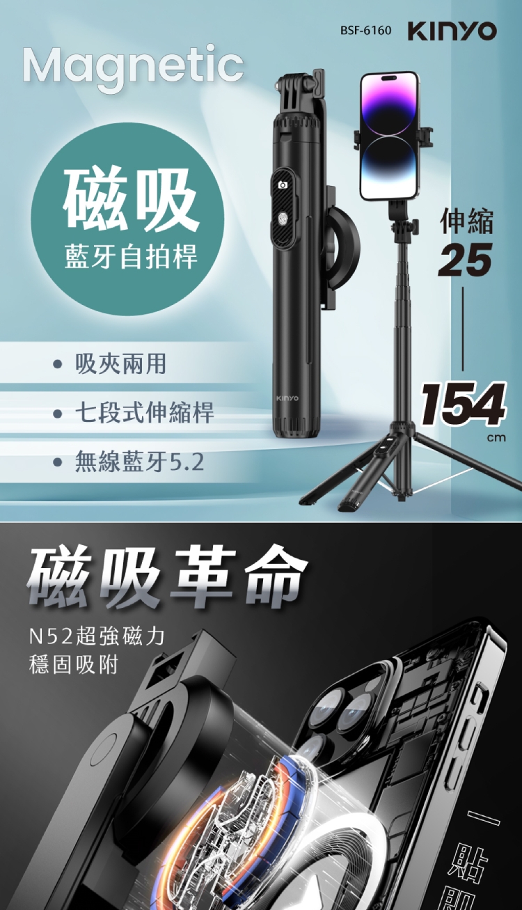 ◎ 型號:KINYO 藍牙磁吸自拍桿 BSF-6160