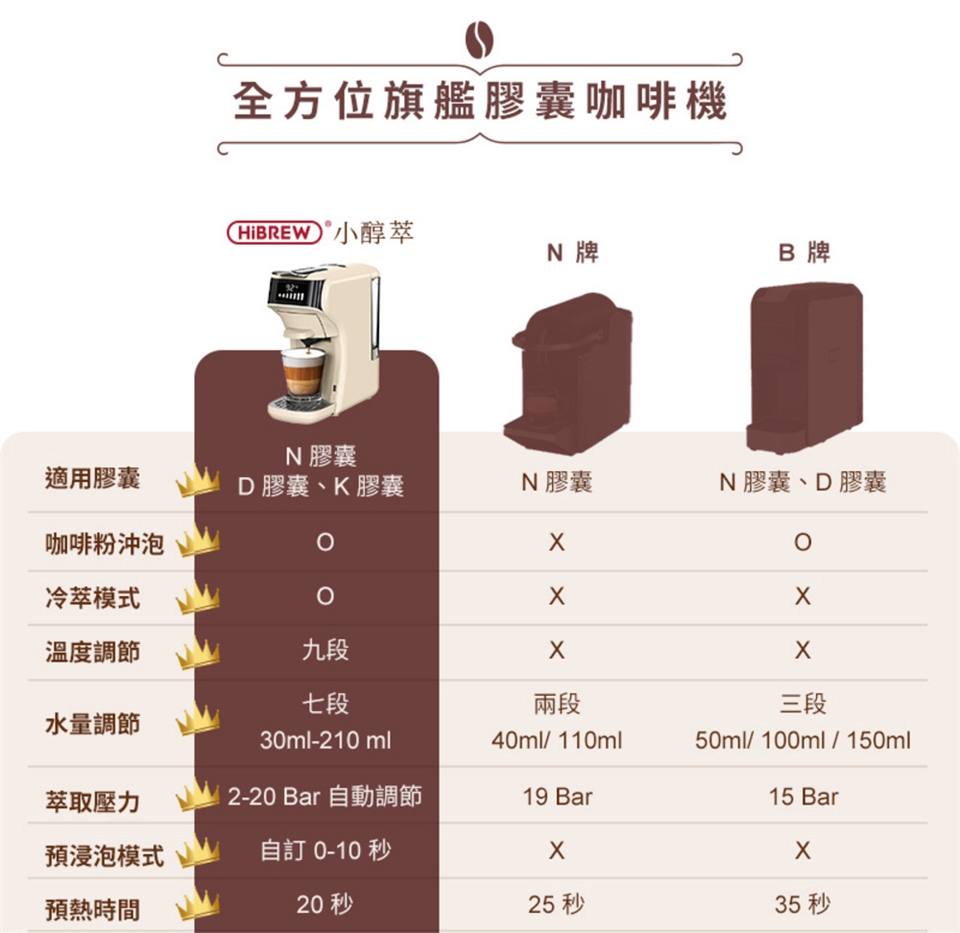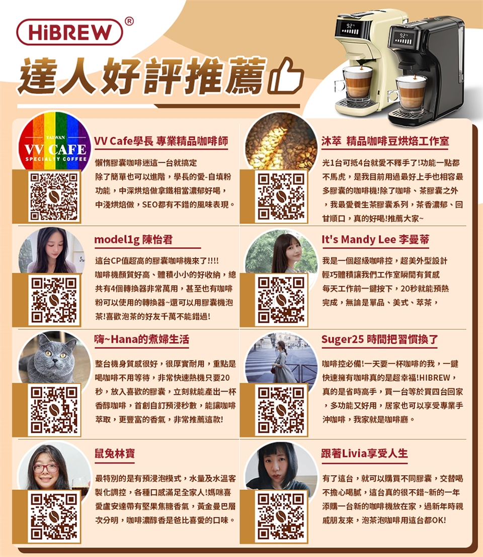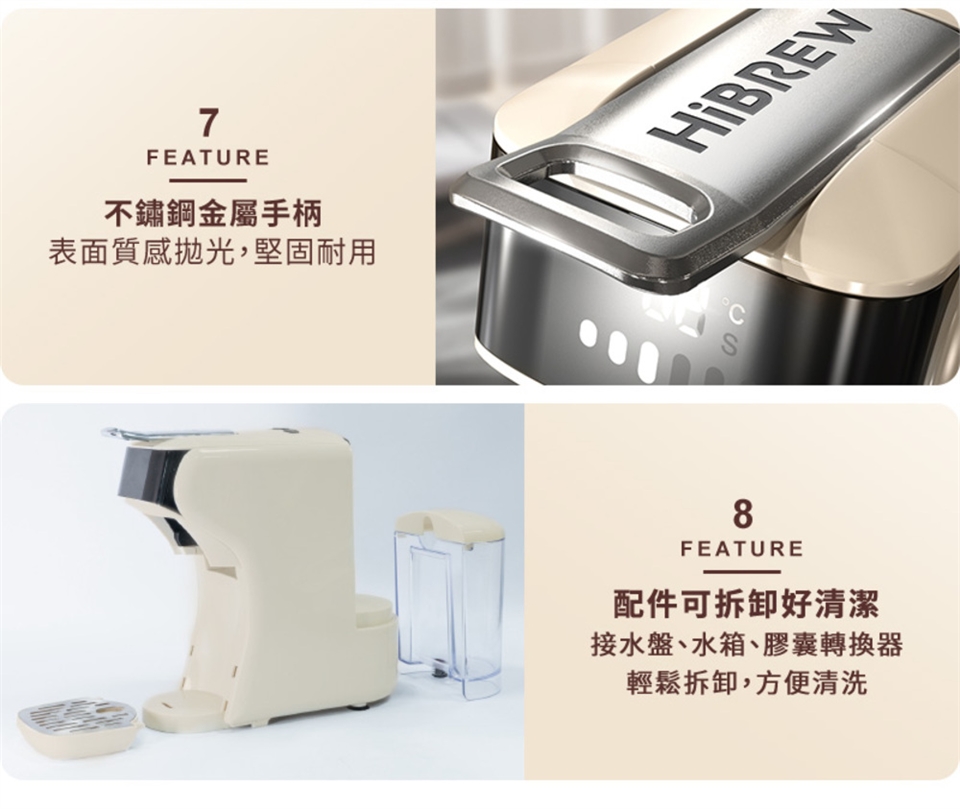 美國咖啡機品牌 HiBREW,專門設計製造義式及膠囊咖啡機,熱銷美國、歐洲、中東等 10 多國家,全球銷售突破 100 萬台,榮獲國際多項專利認證!