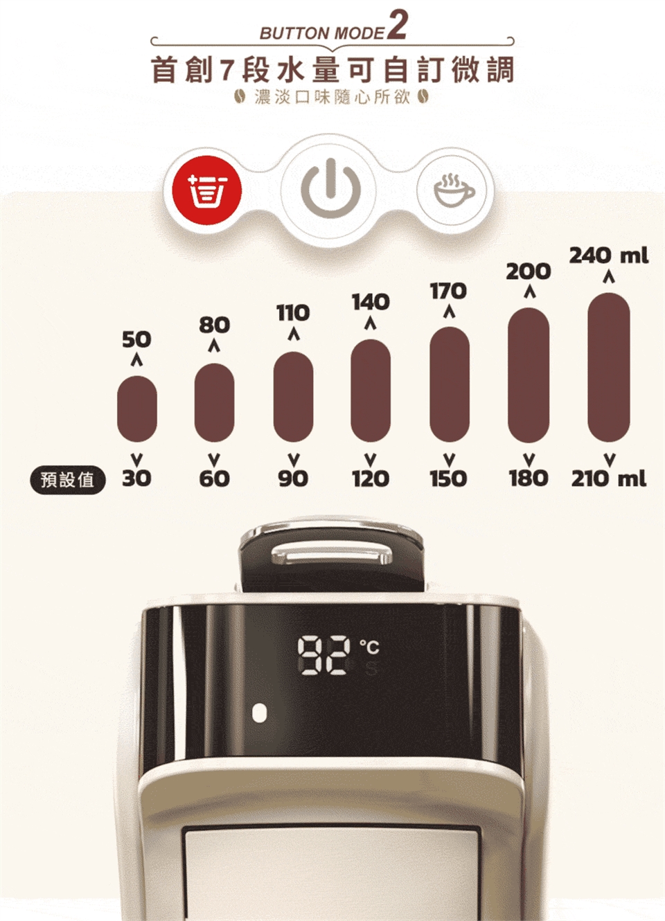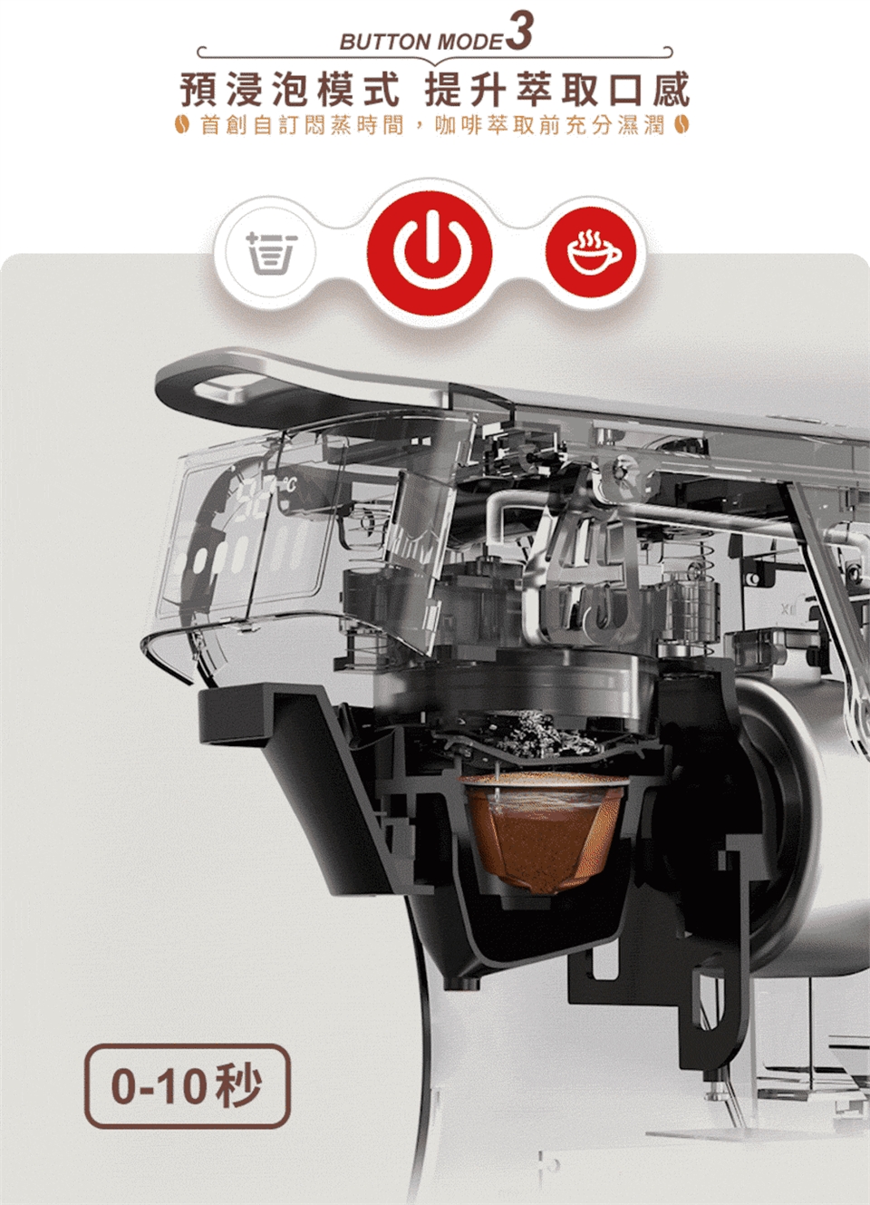 ✩預浸泡功能|首創0~10秒悶蒸秒數設定,將香氣發揮淋漓盡致