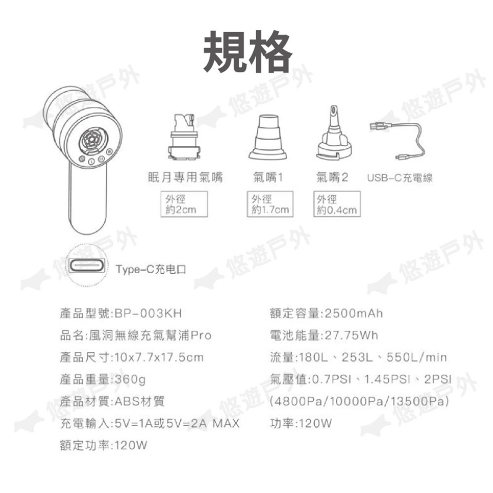 品名:風洞無線充氣幫浦 Pro