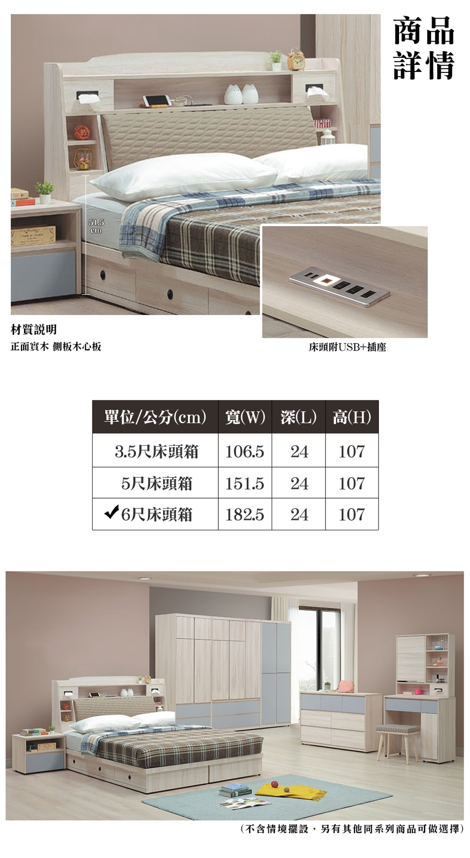 ※此賣場僅販售 恩格斯USB夜燈靠枕床頭箱(雙大6尺)※