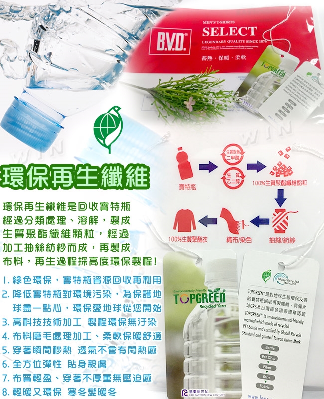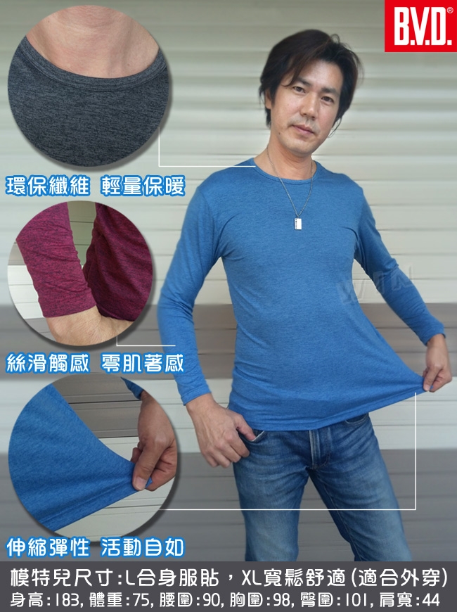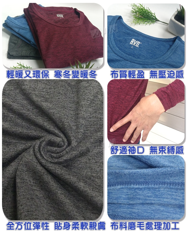 商品名稱:BVD 再生彩紋輕暖絨圓領長袖衫