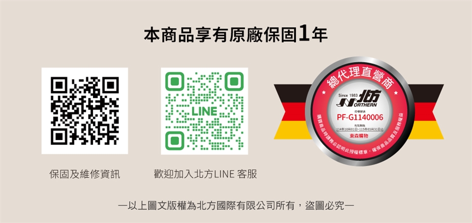 依北方官網上的保固要則為主:https://www.northern.com.tw/pages/warranty