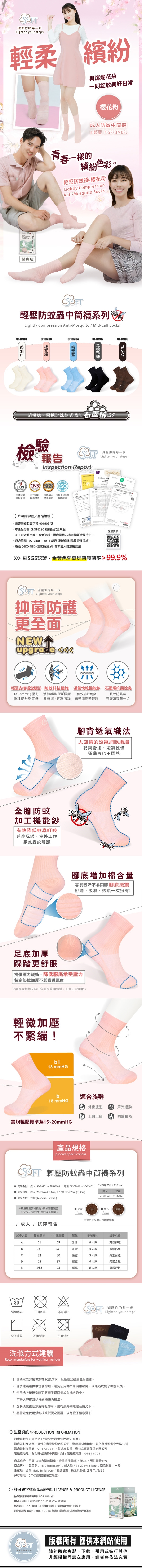 商品名稱:SOFT輕壓防蚊蟲中筒襪 醫療級