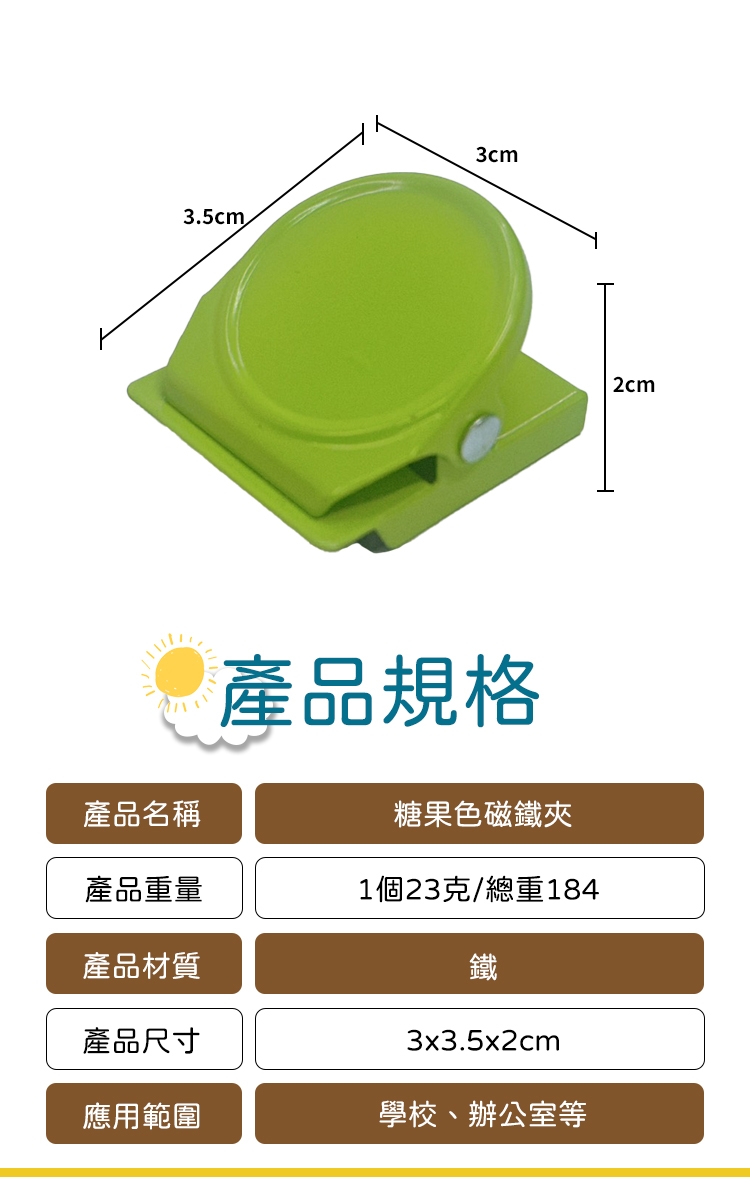 01.強力磁吸:內建強力磁鐵,可吸附於冰箱、白板、鐵製櫃等多種金屬表面,牢固不滑落。