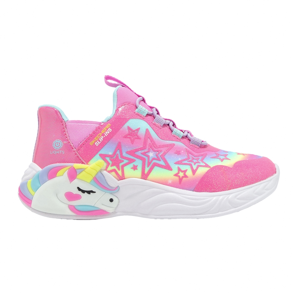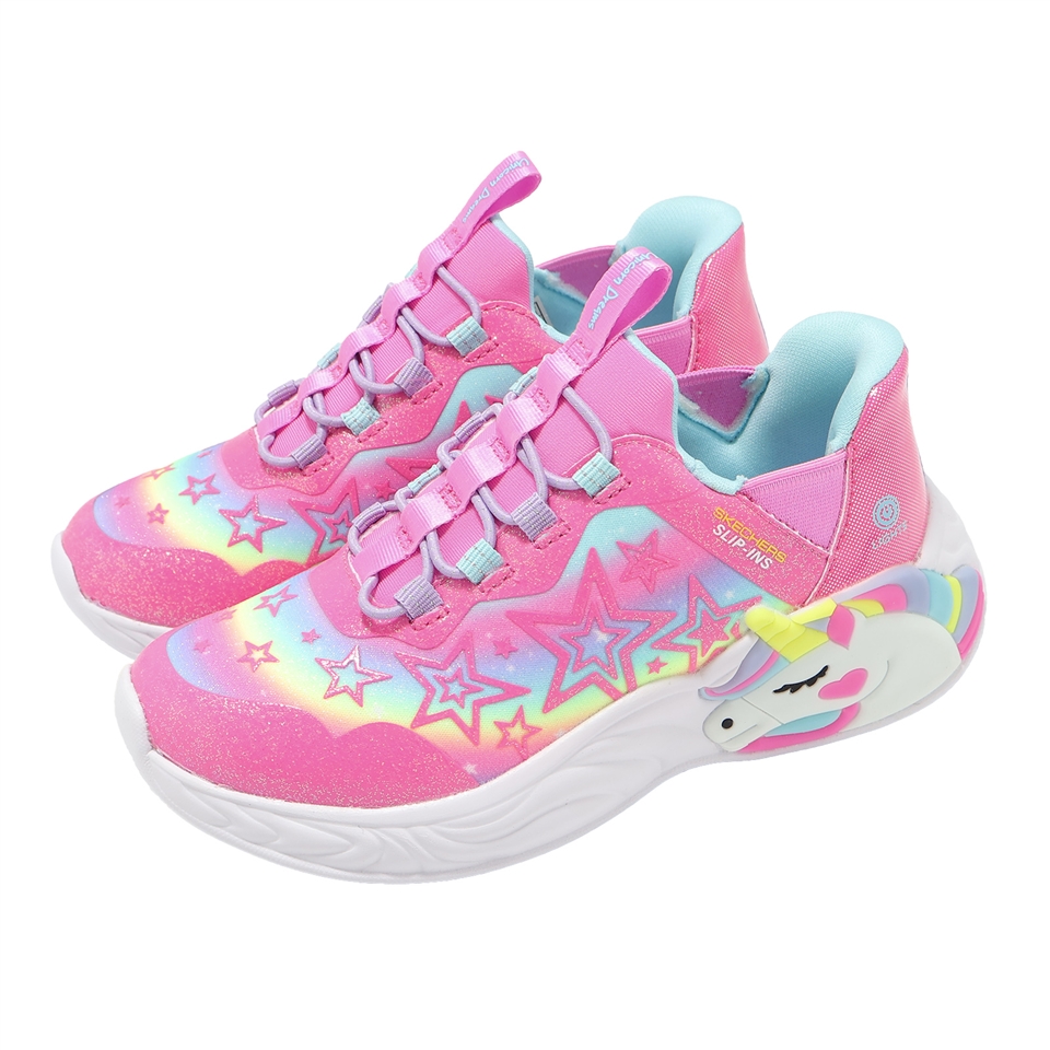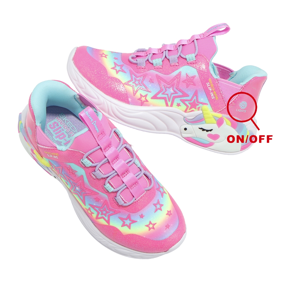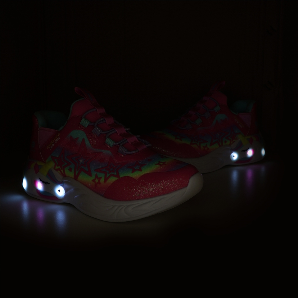 *腳跟立體獨角獸造型閃燈,崁入五彩閃燈,行進間燈光閃爍,趣味十足。