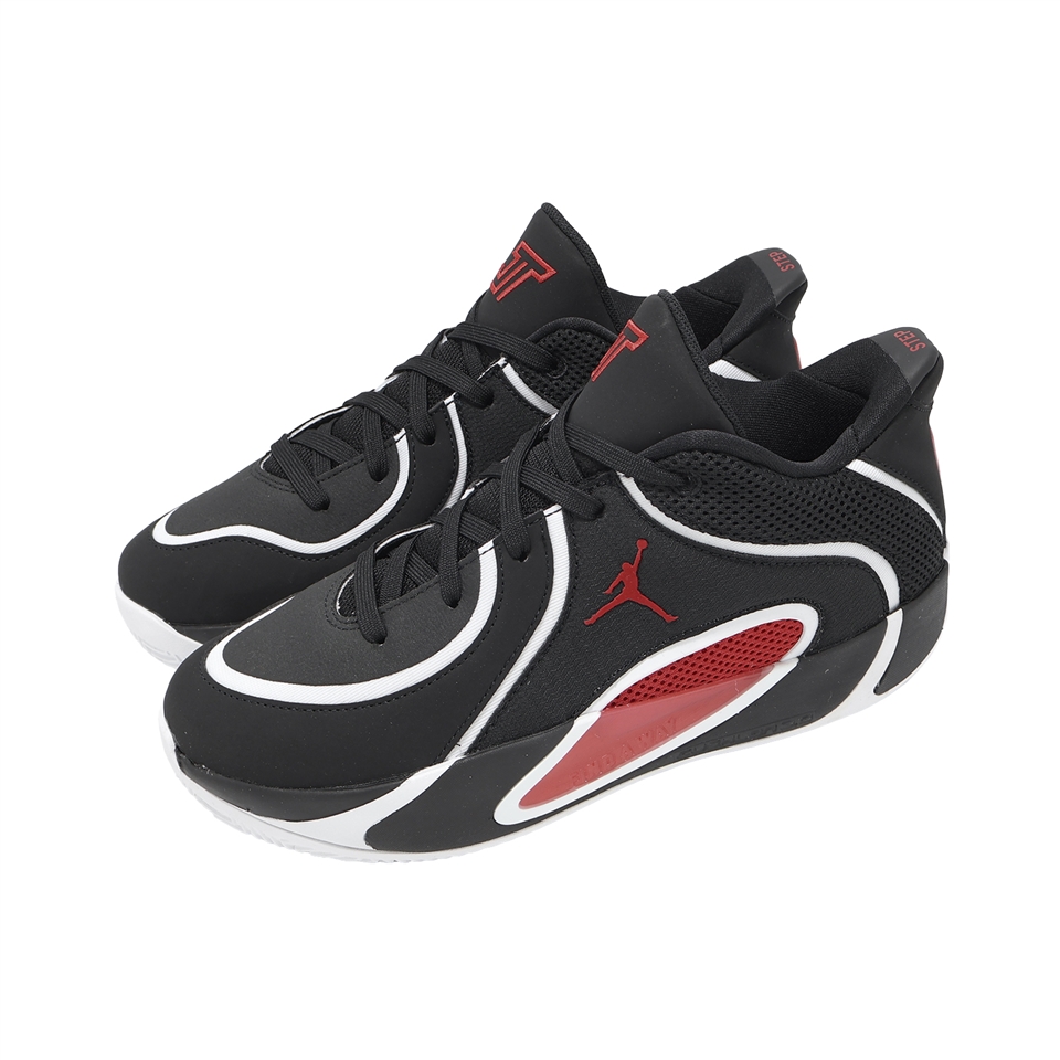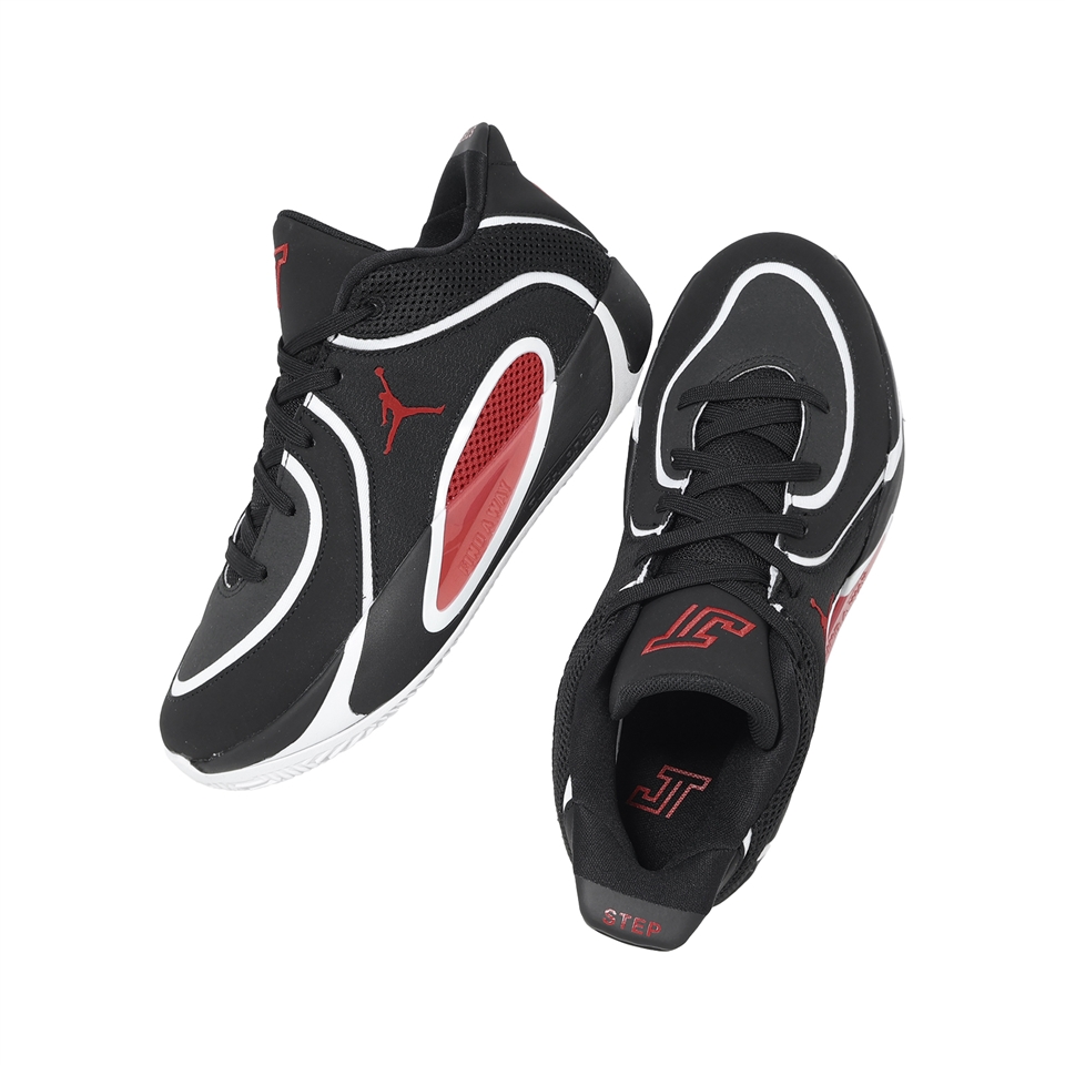 * 全新 Jordan Tatum 4 以喬丹最經典的核心配色,以黑色、白色和大學紅的核心組合呈現' Bloodline '血統的純正地位,鞋後跟以「0」字樣呈現。