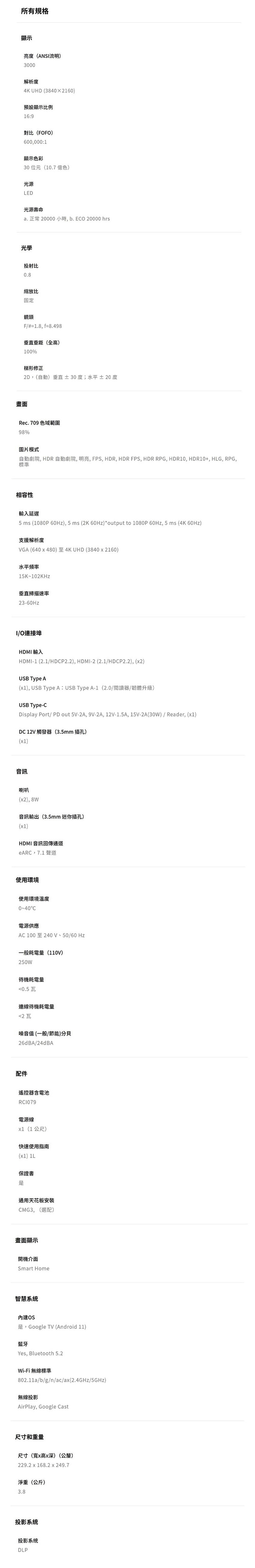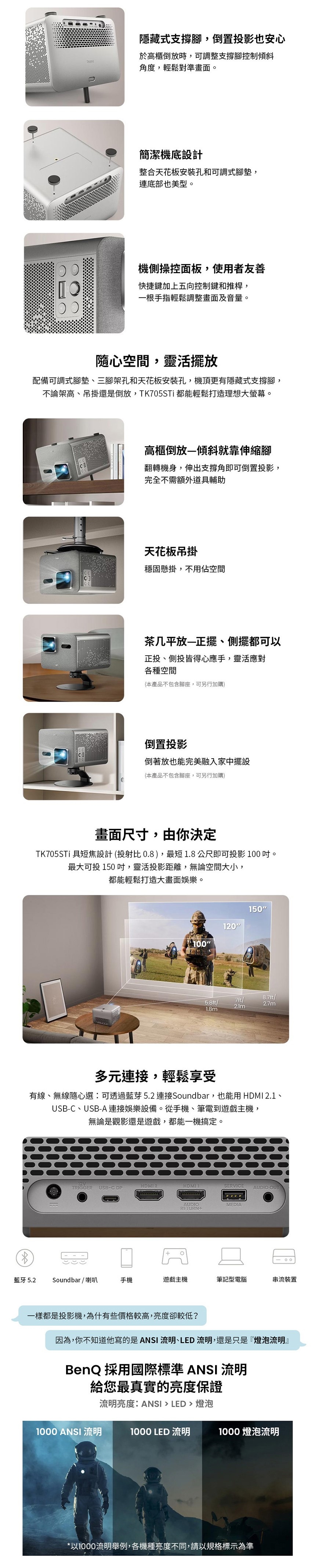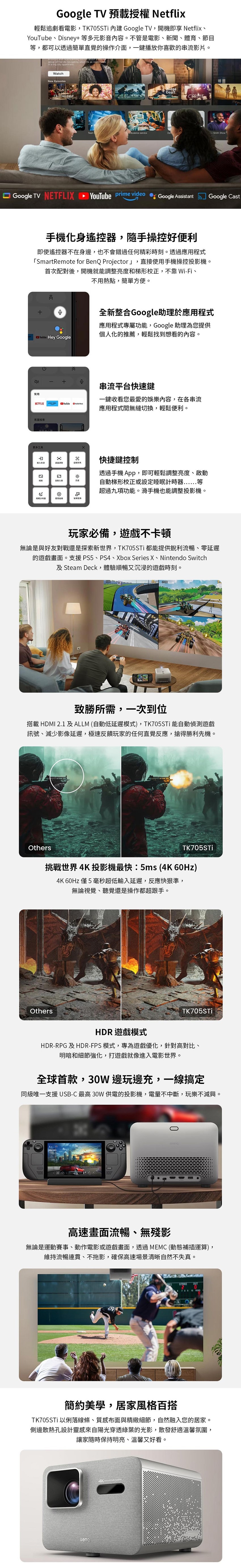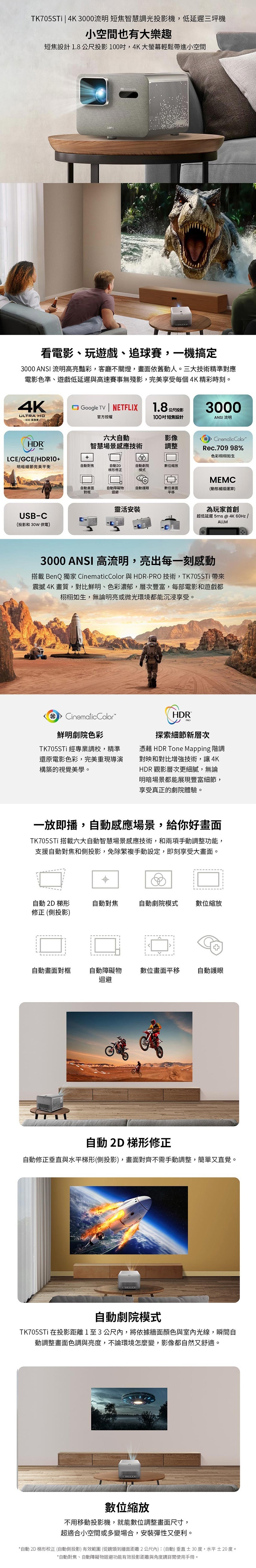 BenQ TK705STi 4K 短焦智慧調光投影機 / 低延遲三坪機