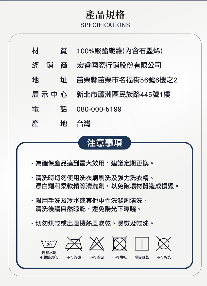 4.切勿烘乾或出風機熱風吹乾、燙熨及乾洗。