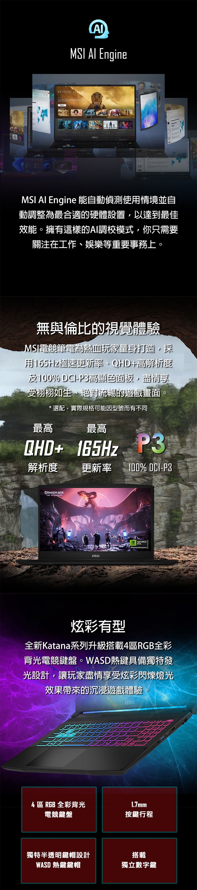 ●鍵盤/輸入裝置:4-Zone RGB Gaming Keyboard with Copilot Key