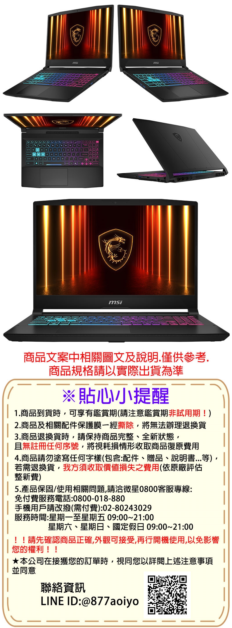 退換貨商品須包裝完整,包材及配件需完整無缺且勿損毀原廠內外箱