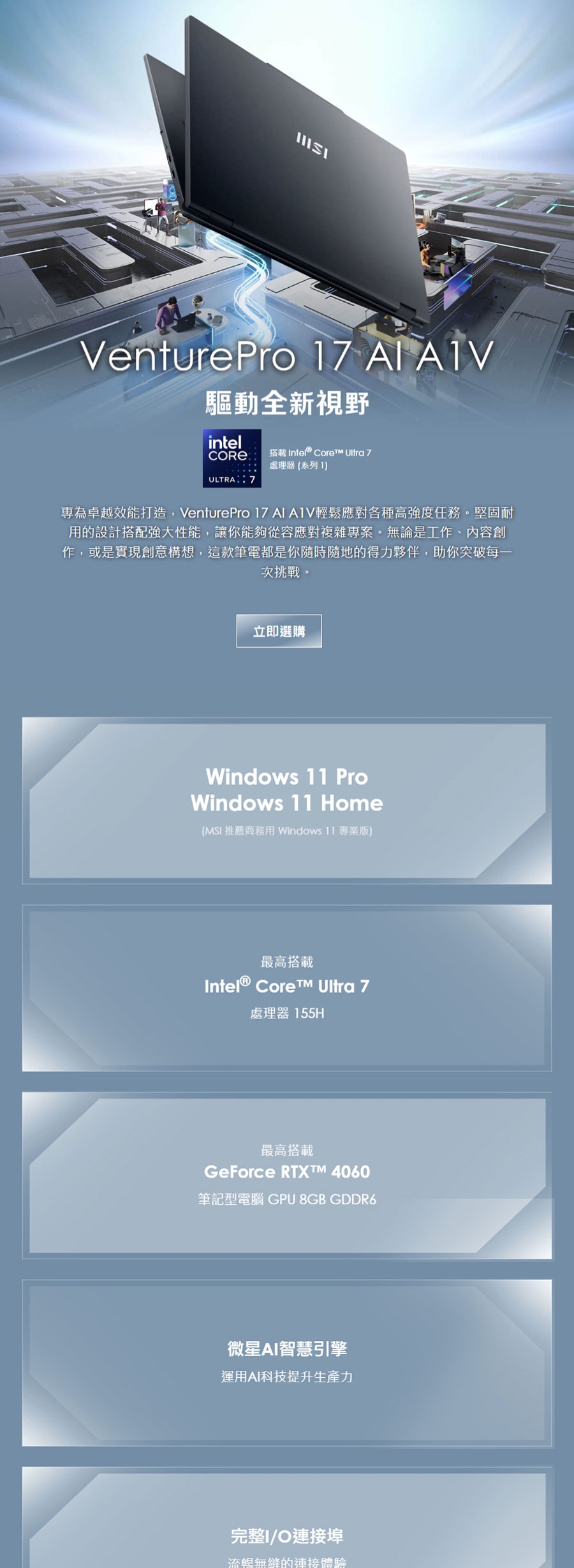 | 處理器 | Intel Core Ultra 7 155H (1.4GHz/Turbo 4.8GHz)(Cache 24MB) |
