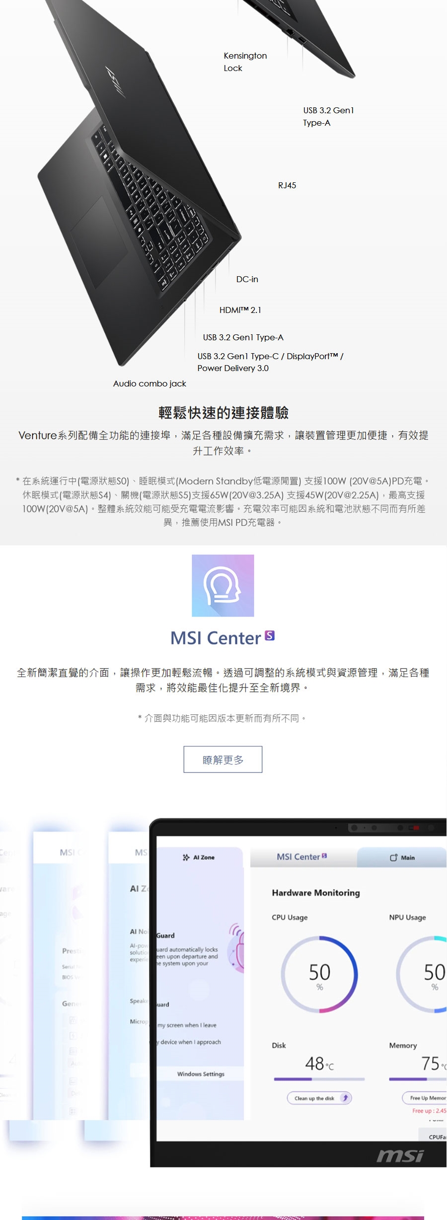 | 主記憶體 | 64G DDR5 (升級加裝) 2Slots ,Max 96GB |