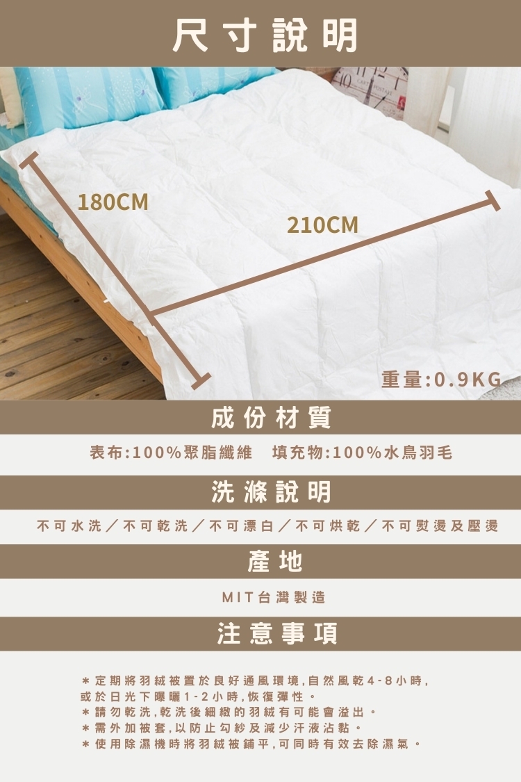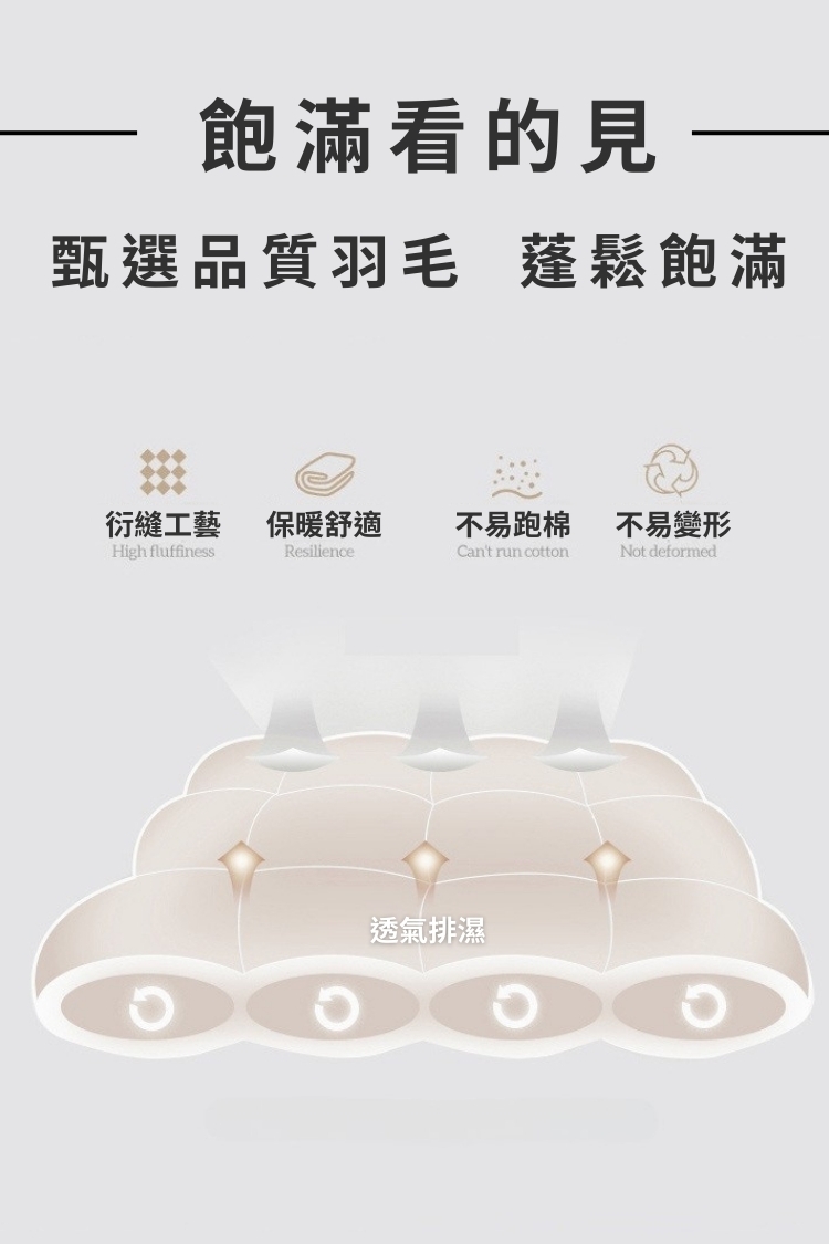 *請勿乾洗,乾洗後細緻的羽絨有可能會溢出。
