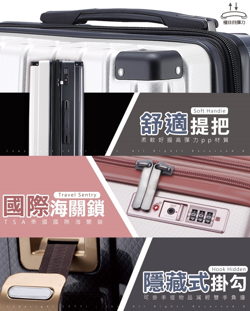 ■ 此款行李箱為固定式 TSA海關密碼鎖,請自行設定自己專屬的密碼。