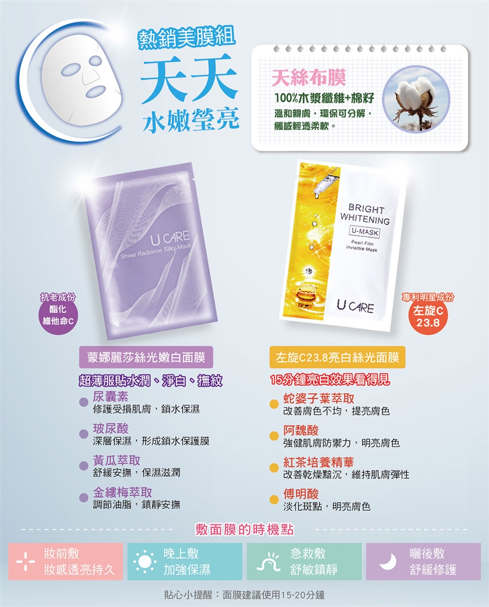 U CARE 蒙娜麗絲光嫩白面膜(10片入/盒) *3