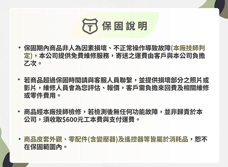 1 年保固,外觀與人為因素不在保固範圍內。
