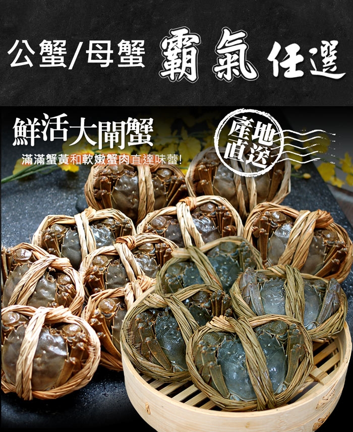 清蒸大閘蟹。(綑綁大閘蟹的繩子不能解開,以免蟹腳斷裂。)