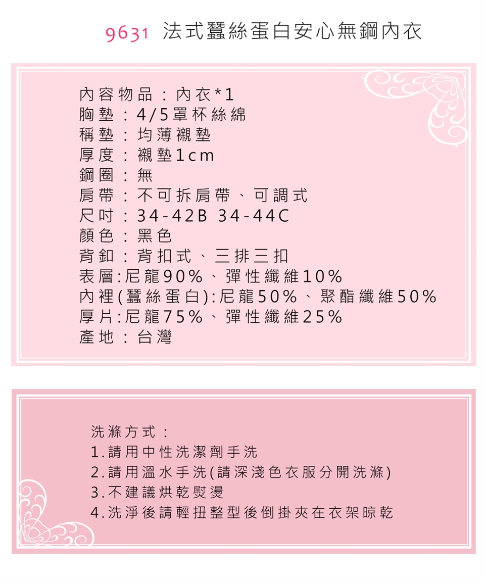 品名:【凱芮絲MIT精品】法式蠶絲蛋白安心無鋼內衣 -滿天星96311(B-C)