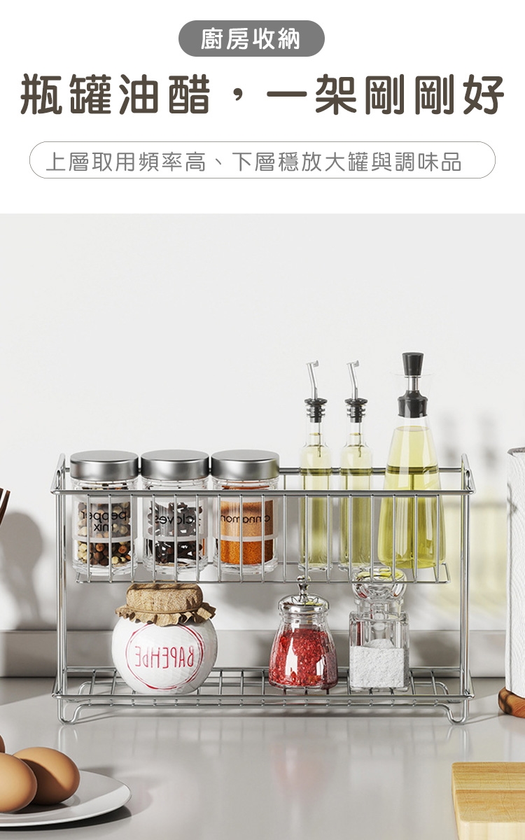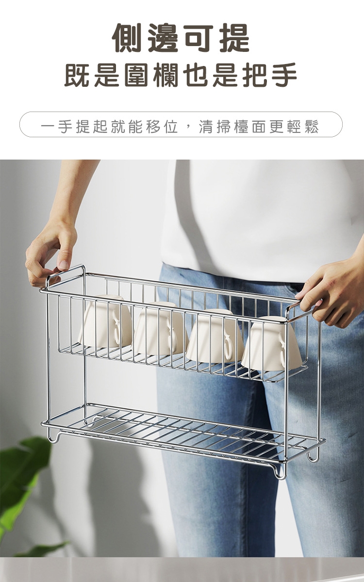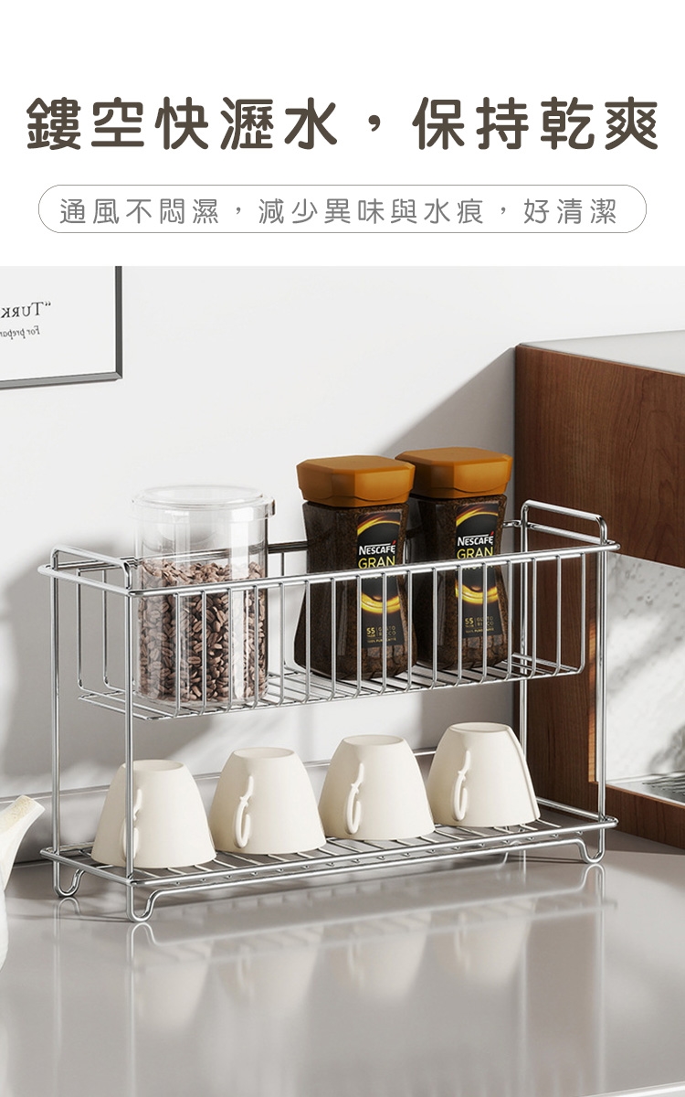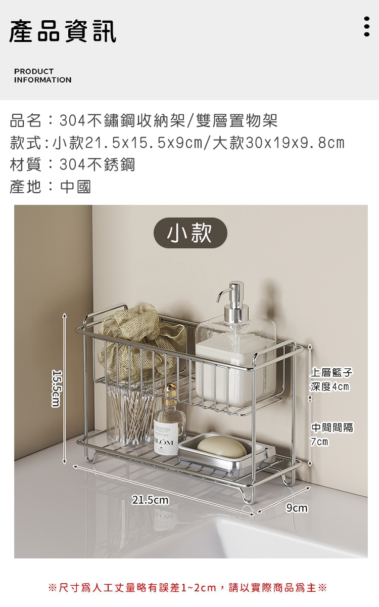品名:304不鏽鋼收納架/雙層置物架/調味料/水杯收納架-小21.5x15.5x9