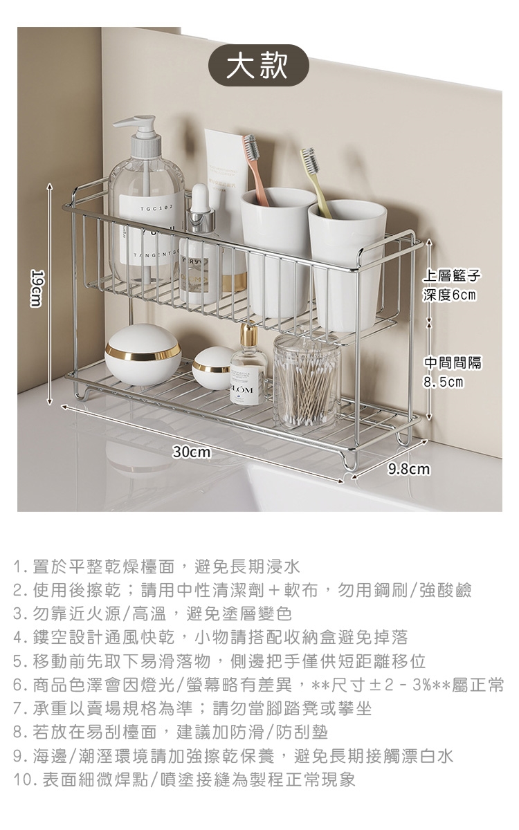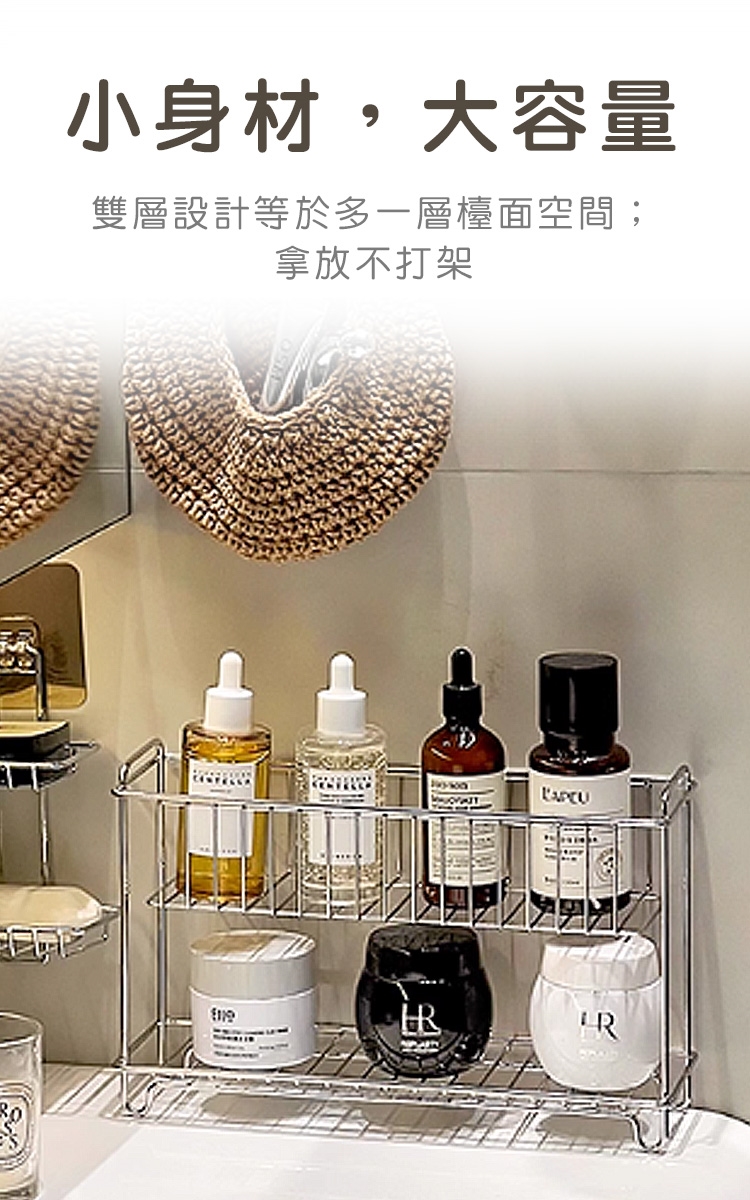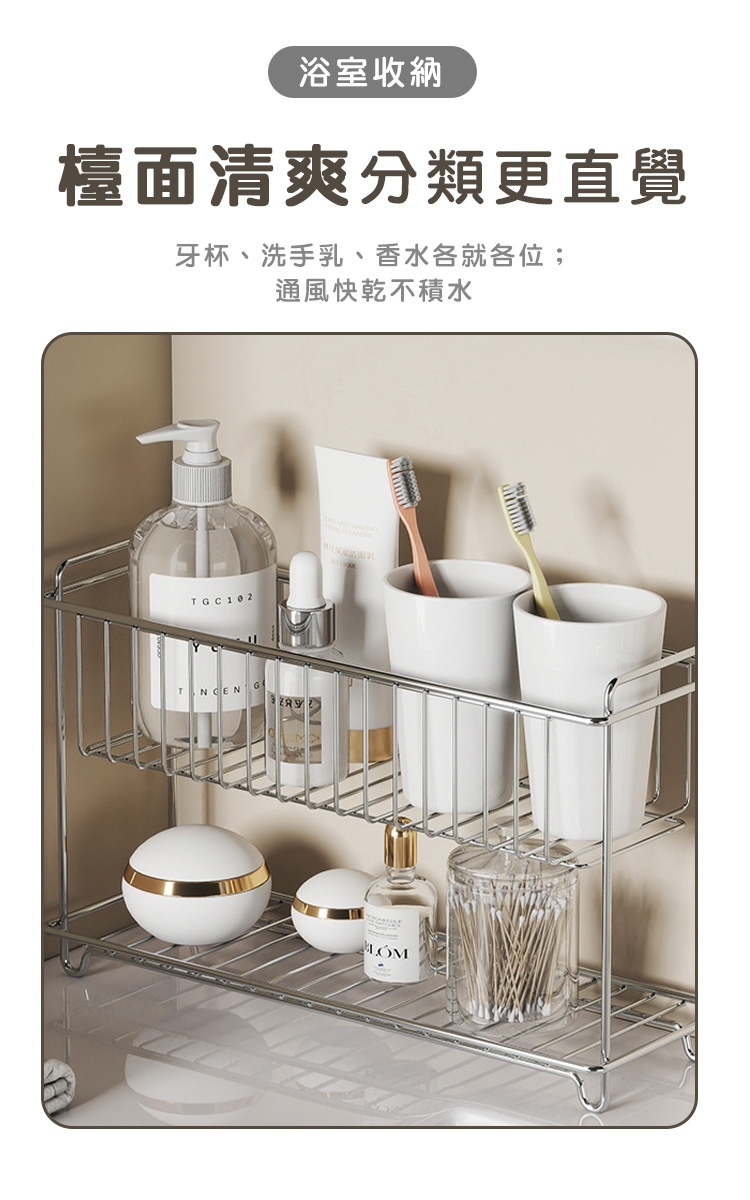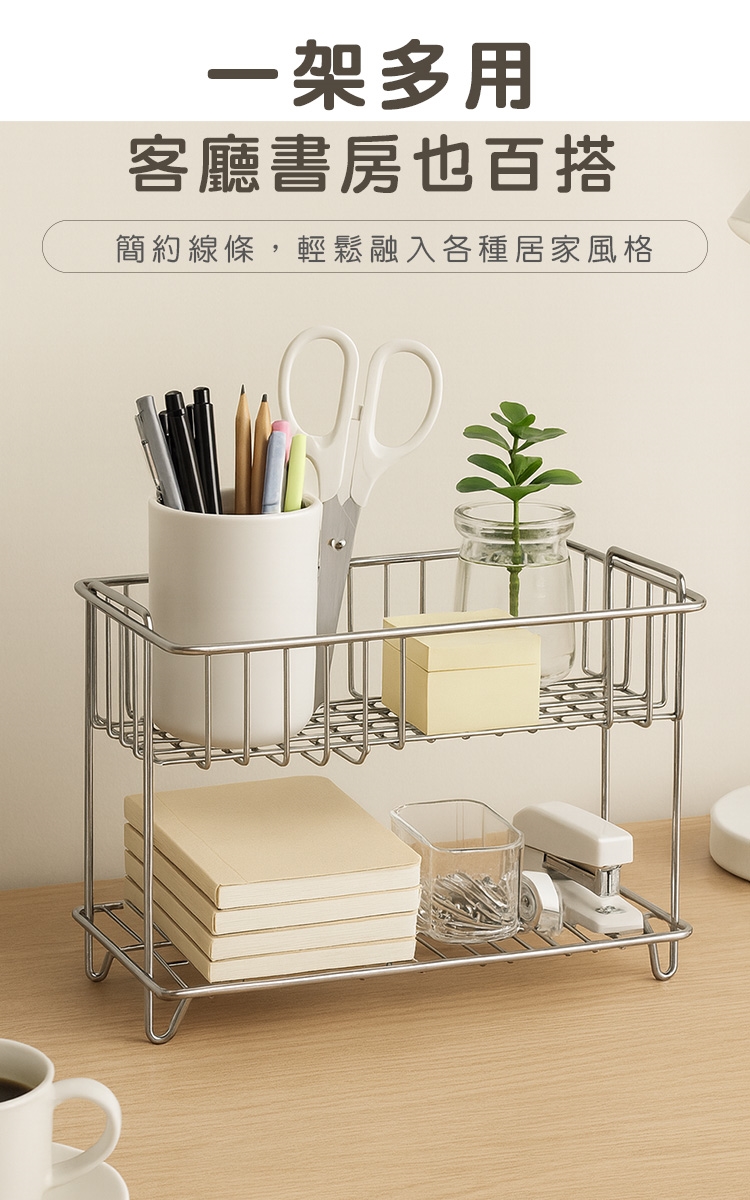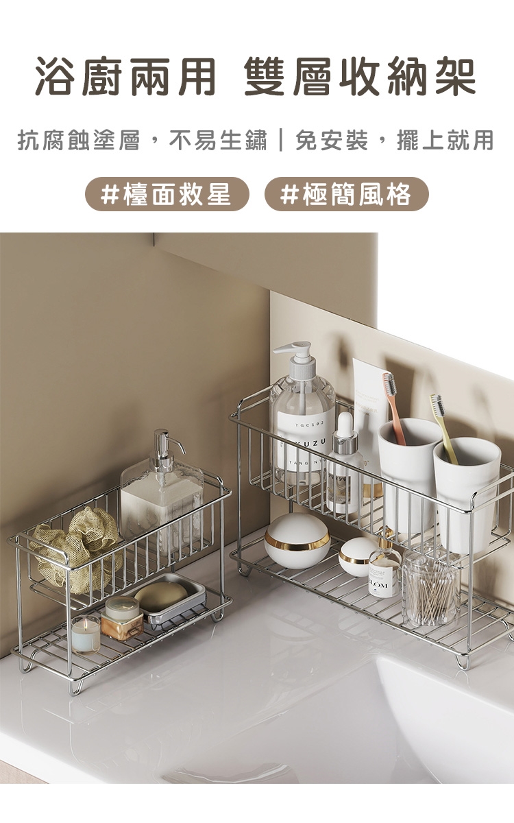 品名:304不鏽鋼收納架/雙層置物架/調味料/水杯收納架-小21.5x15.5x9