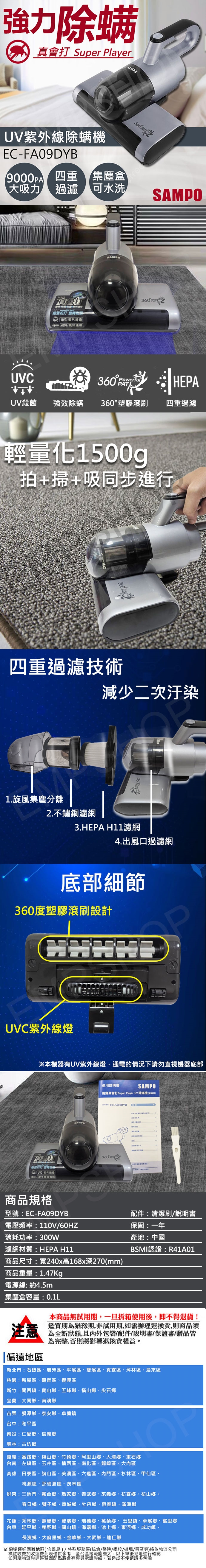 【聲寶SAMPO】UV除螨機 EC-FA09DYB