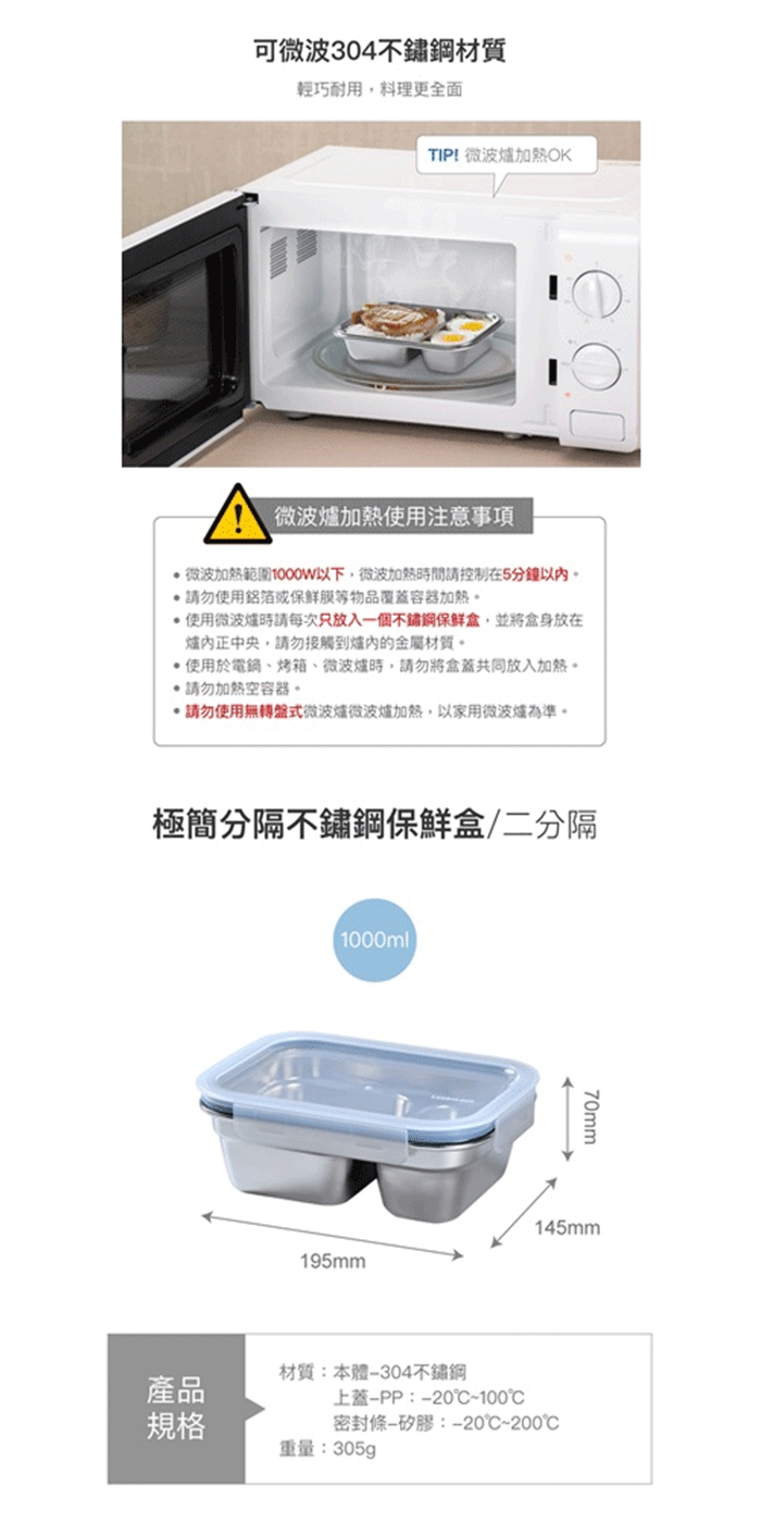 ◎ 注意事項:微波加熱範圍1000W請控制在5分鐘以內
