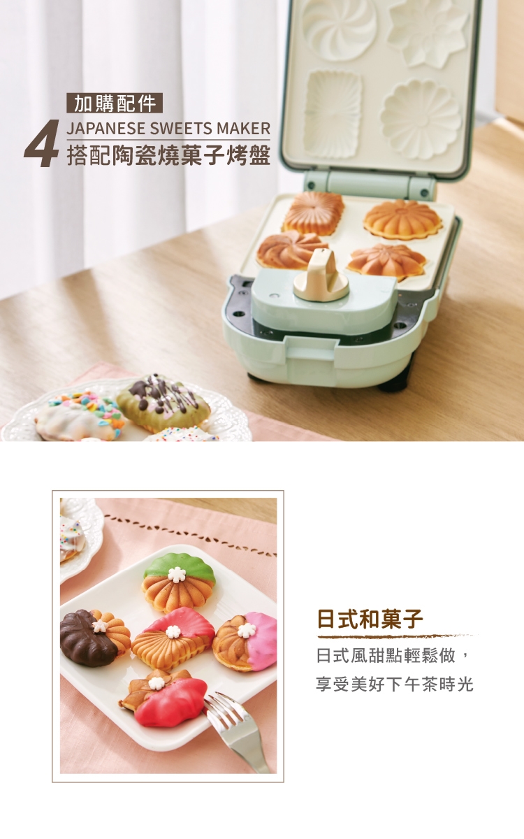 商品內容:主機(內含三明治烤盤)X1、食譜X1、產品使用說明書含保固書X1(另有5款造型烤盤可選購)