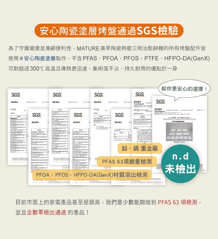 天然陶瓷塗層通過SGS PFAS 62項檢測,全數0檢出通過