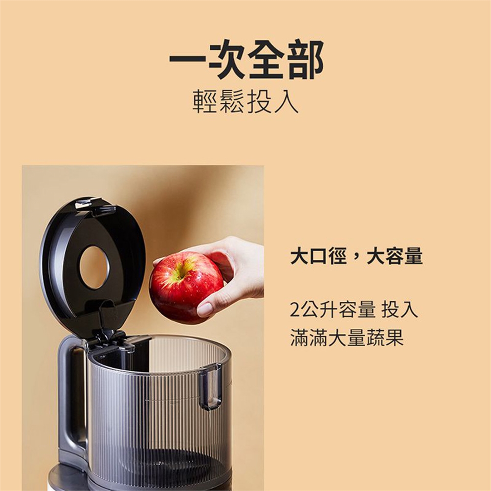 ◆ 140mm大口徑,蔬果不用切直接投入。