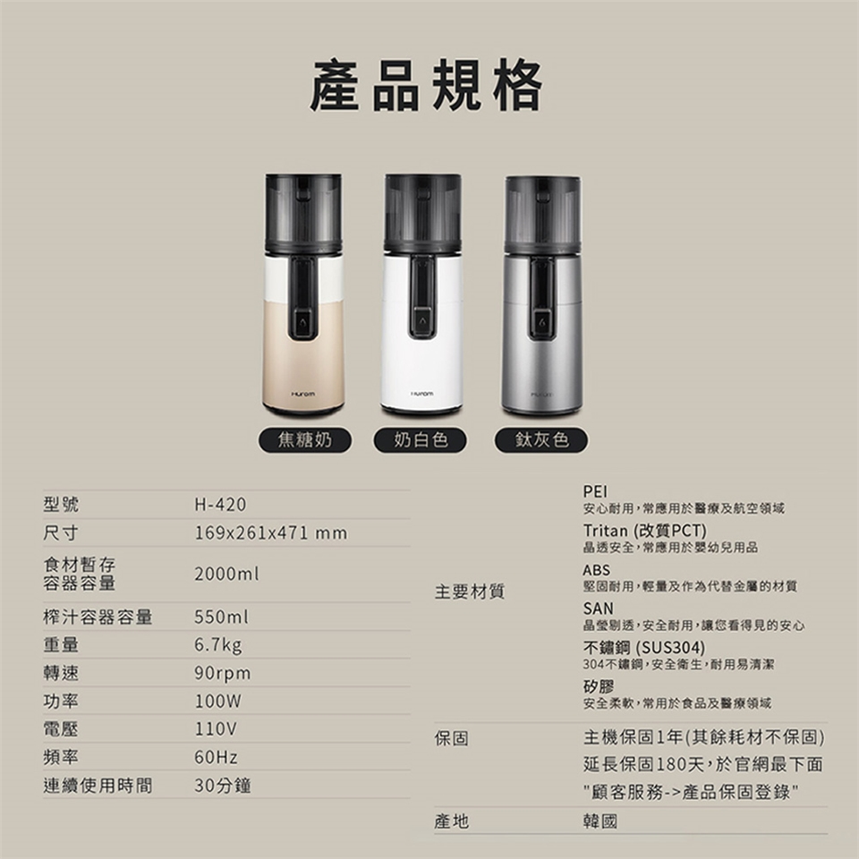 HUROM 酵素慢磨蔬果機 H-420