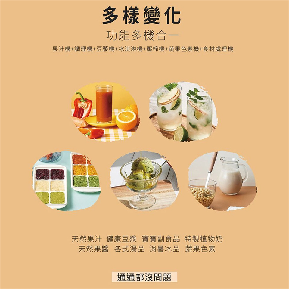 ◆ 除了蔬果汁還可做豆漿、純天然水果冰淇淋等...