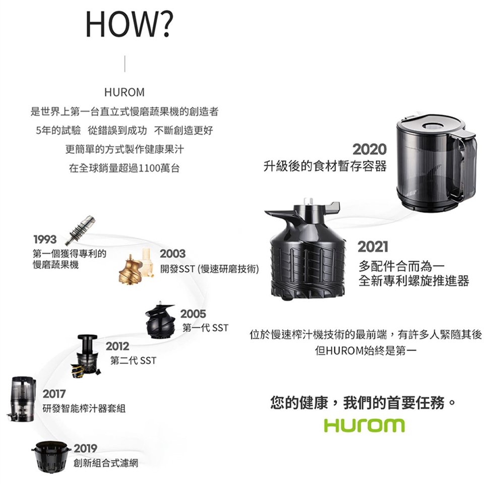 ◆ 世界首創直立式慢磨機。
