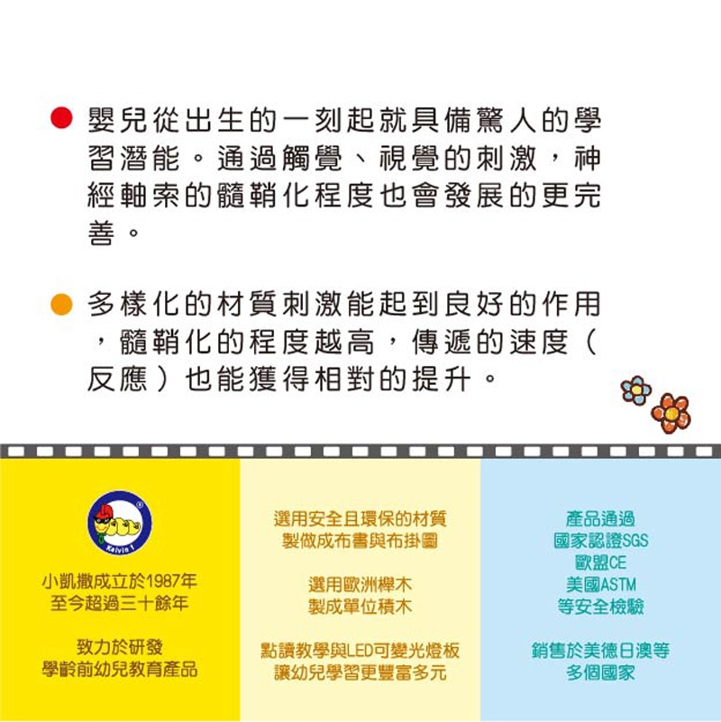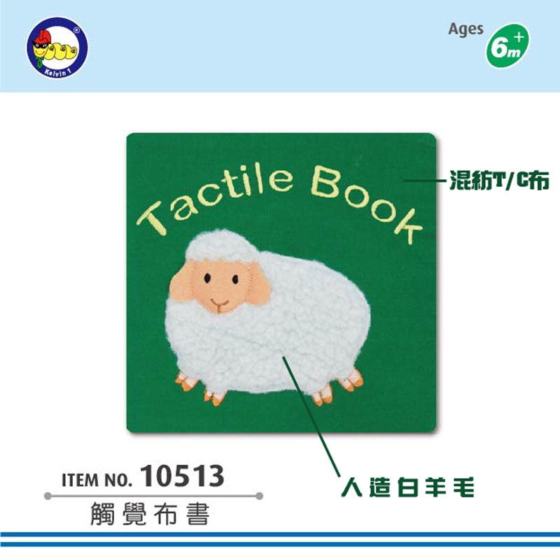 本布書共9頁,每頁選用不同材質製作,依序為長毛絨的小綿羊、燈心絨的瓢蟲、麻質網眼布的水果籃、
