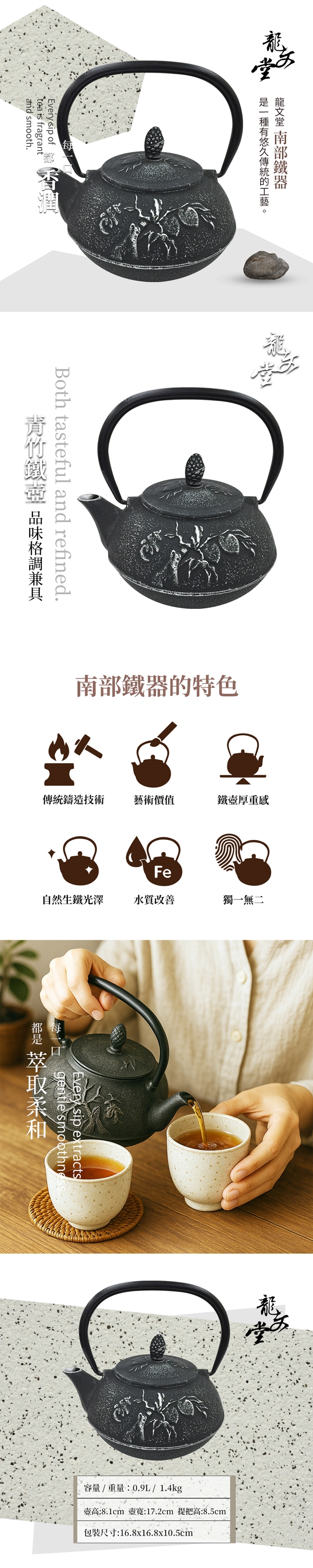 6.南部鐵器表面皆為手工製作,每件略有不同,略為不平或色差為正常現象。