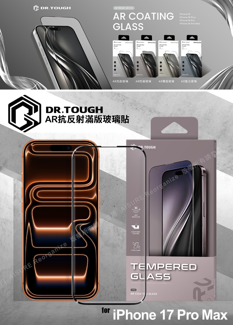 DR.TOUGH 硬博士 iPhone 17 Pro Max AR抗反射滿版玻璃貼