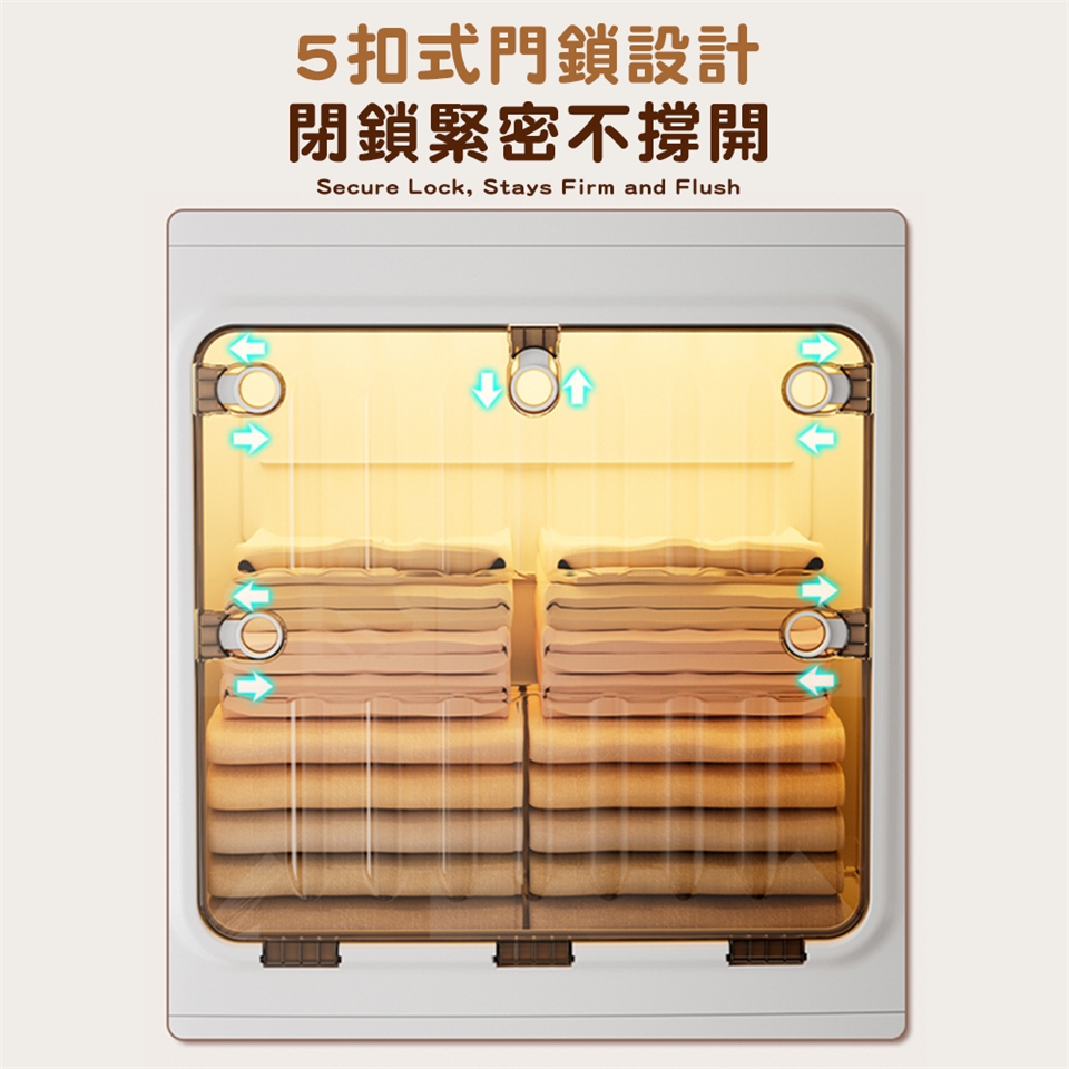 ●5扣式門鎖設計,閉鎖緊密不撐開