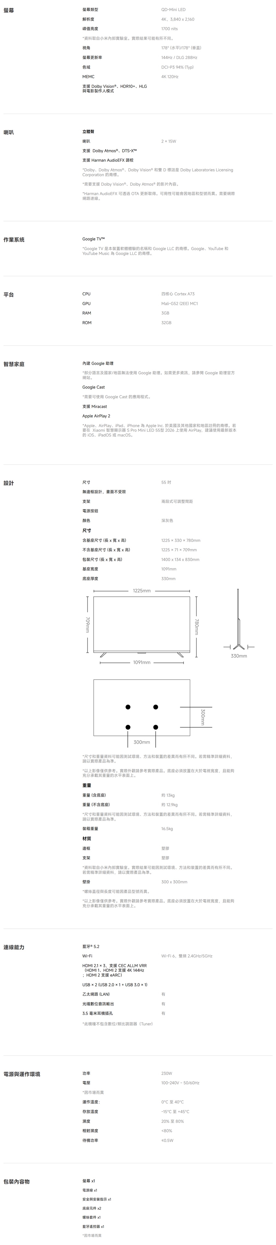 - 1700 nits的峰值亮度和 Dolby Vision®,呈現令人驚豔的清晰畫面